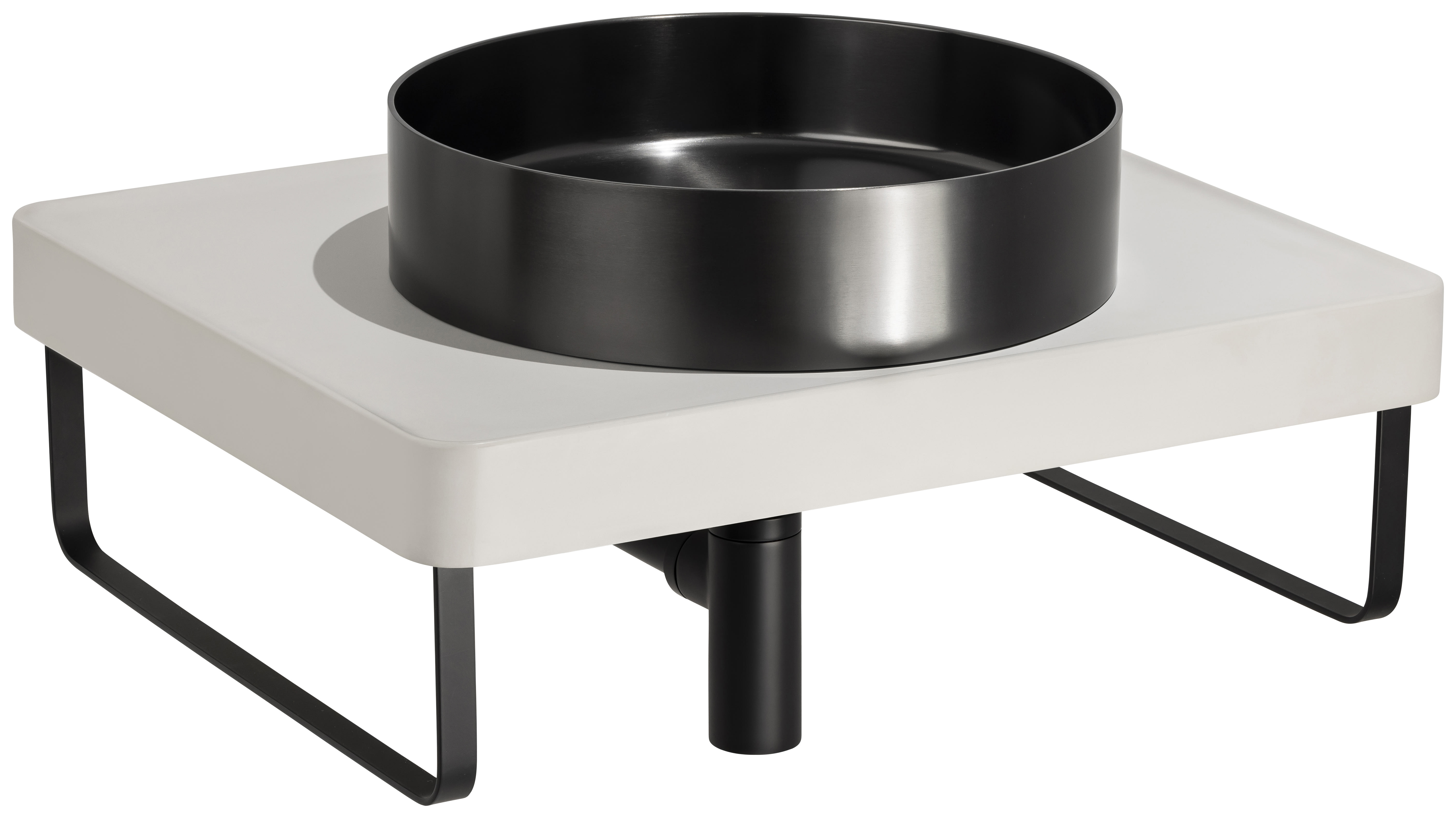 Abode Cava Round Countertop Steel Black Basin with Pebble Grey Worktop, Matt Black Bottle Trap & Towel Rail