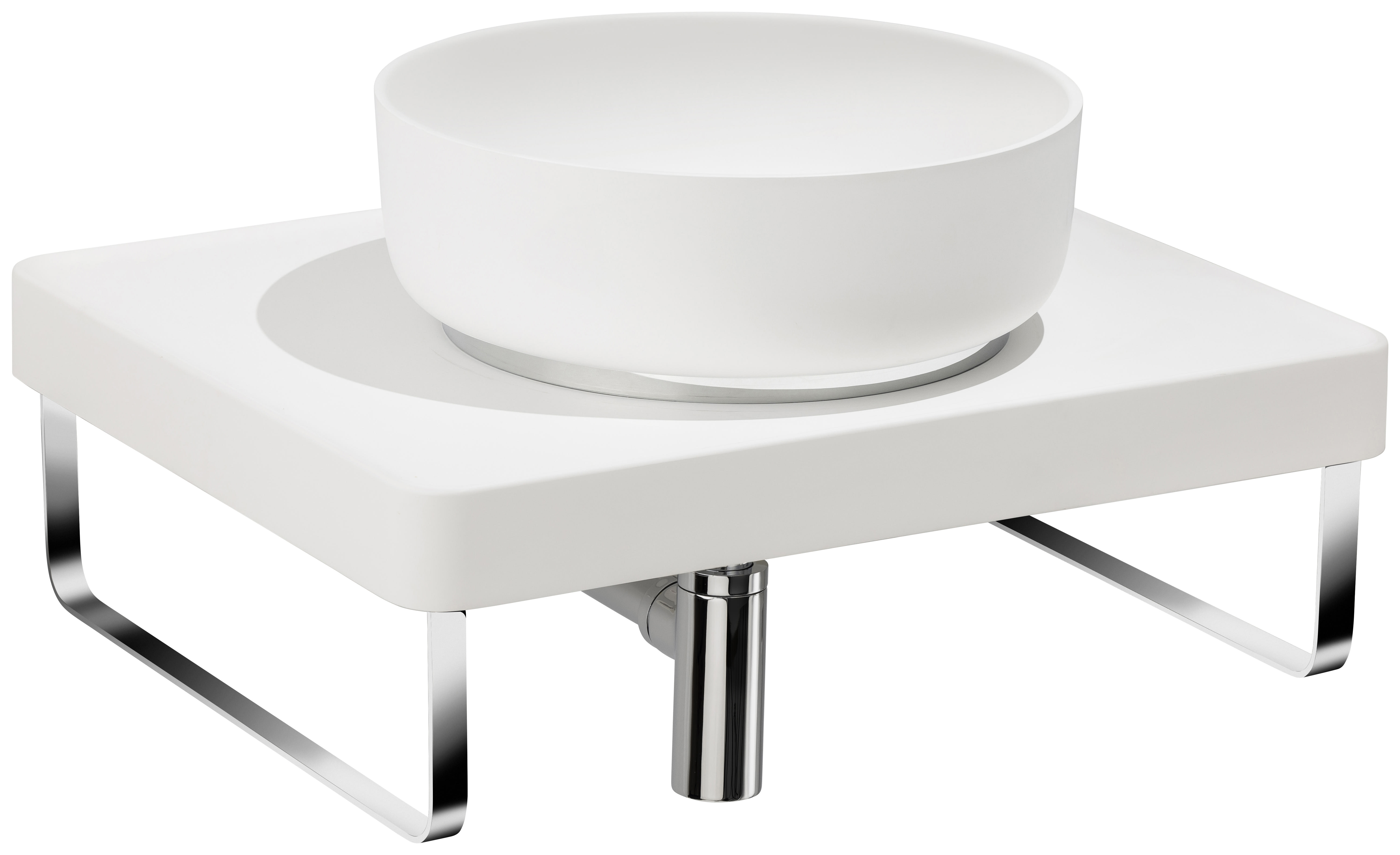 Abode Cava Round Countertop package is made from RemaStone which brings the wow factor to your bathroom. Comes included with a white worktop, chrome clicker and bottle trap basin waste, round chrome basin plinth, chrome towel rail and metal wall brackets.
