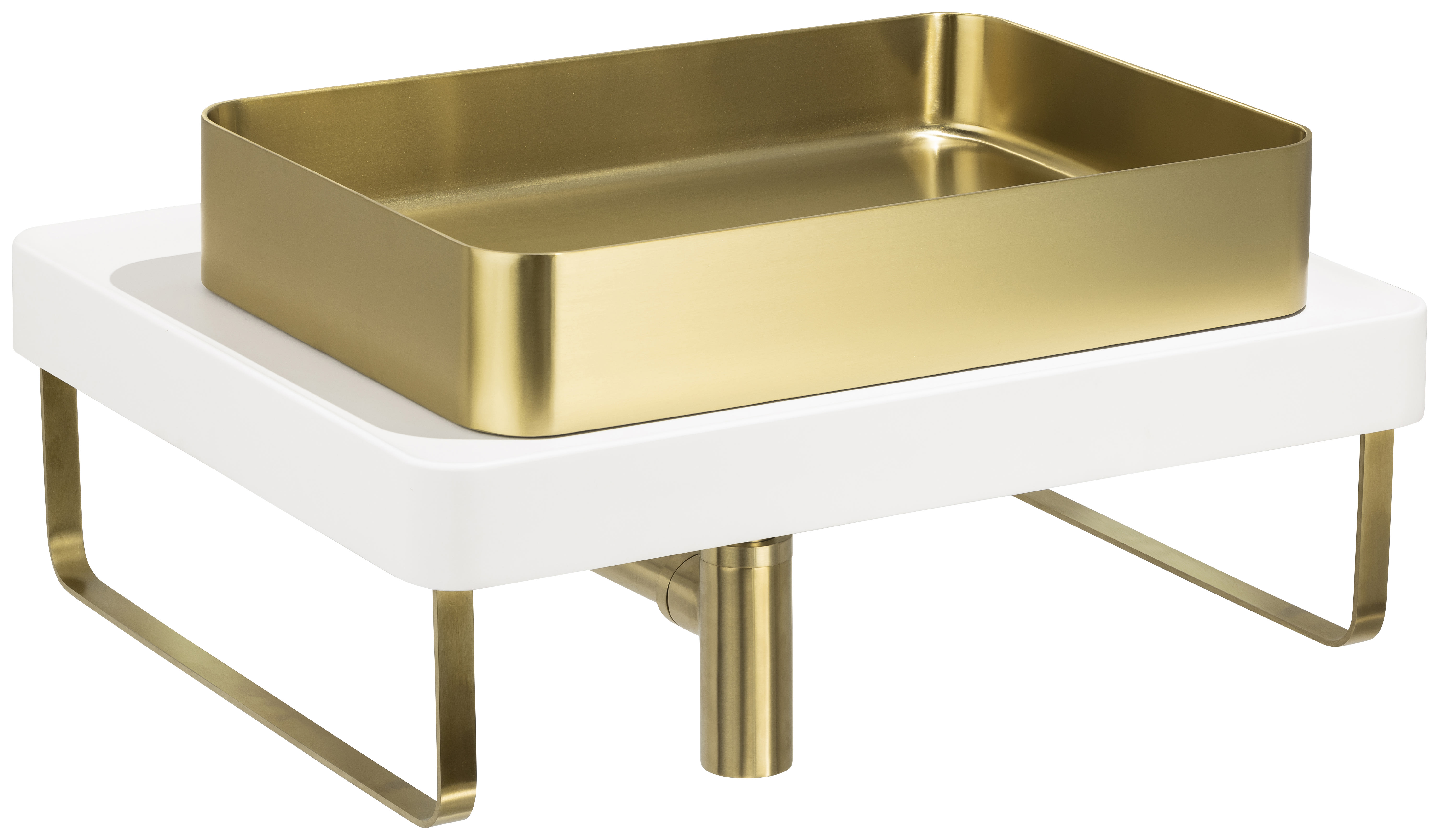 • Includes: Rectangular countertop steel brushed brass basin, universal clicker waste, bottle trap, worktop, metal wall brackets, towel rail & fixings