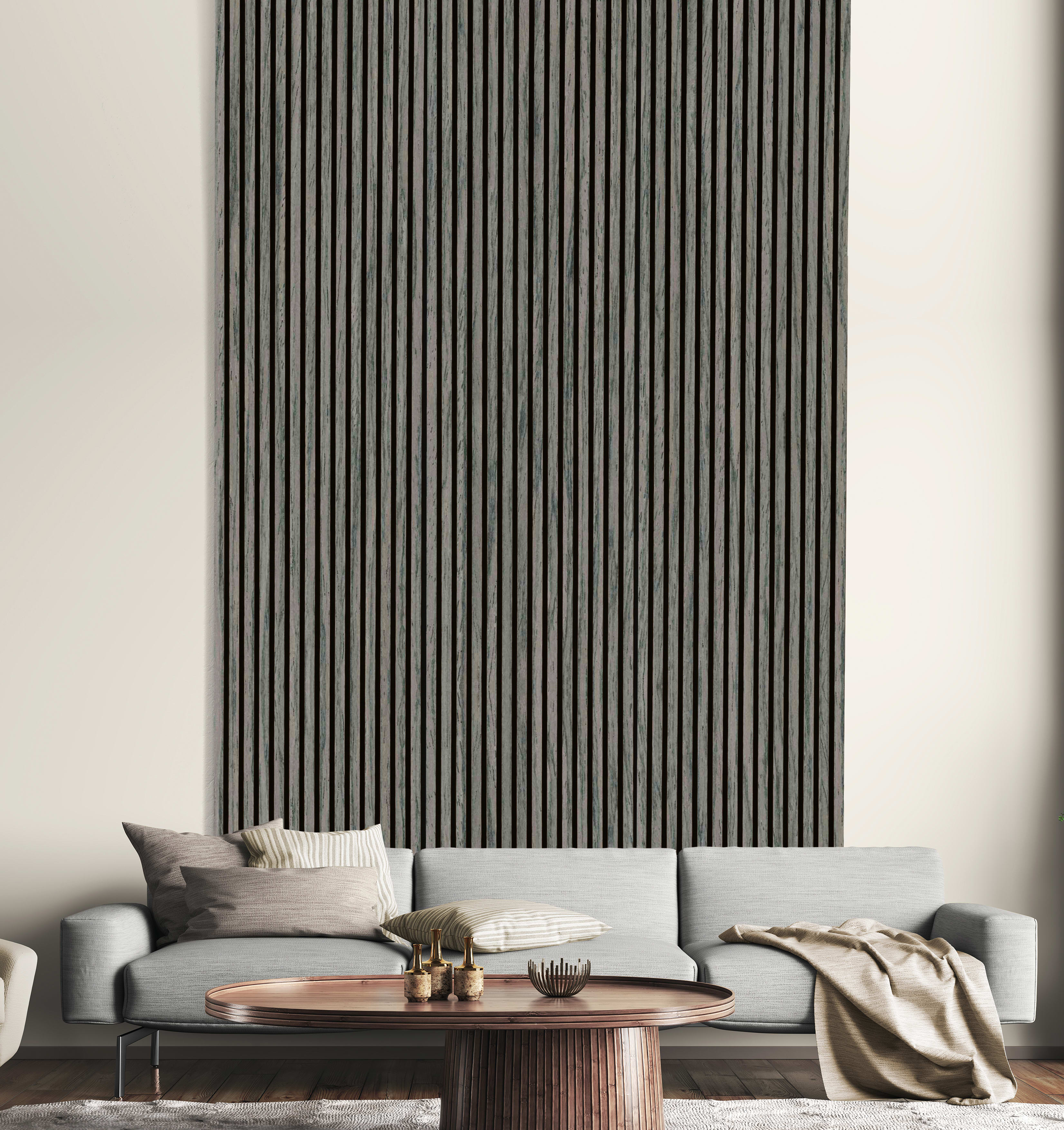 Acoustic Slat Wall Real Grey Oak Veneer Wood Panel - 19 x 573 x 2400mm