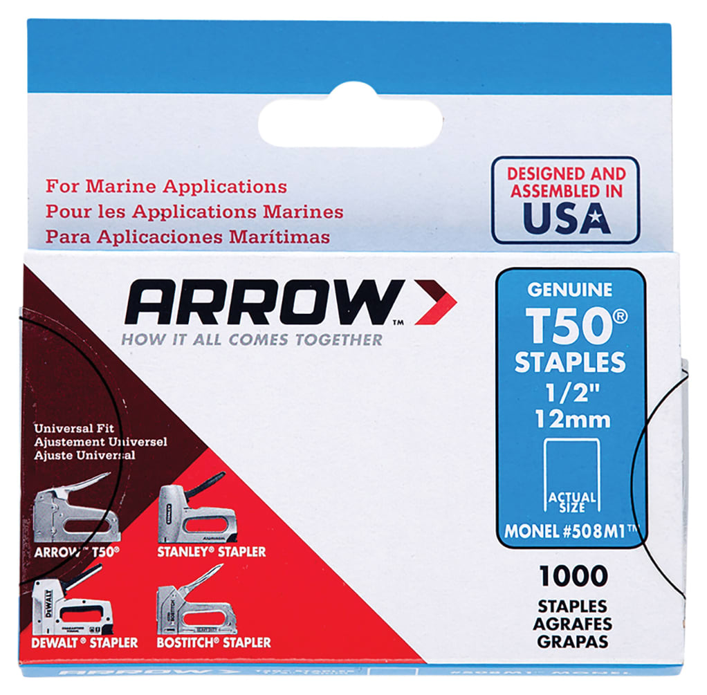 The Arrow T50M 505m Monel Staples 8mm ( 5/16in) have a rustproof finish and are recommended for their durability and resistance to corrosion. They are totally waterproof and can be used under water. For use with T50, T55, T50PBN, HT50P, HTX50, ETFX50, ETF50PBN, CT50K, 5700 and 8000.