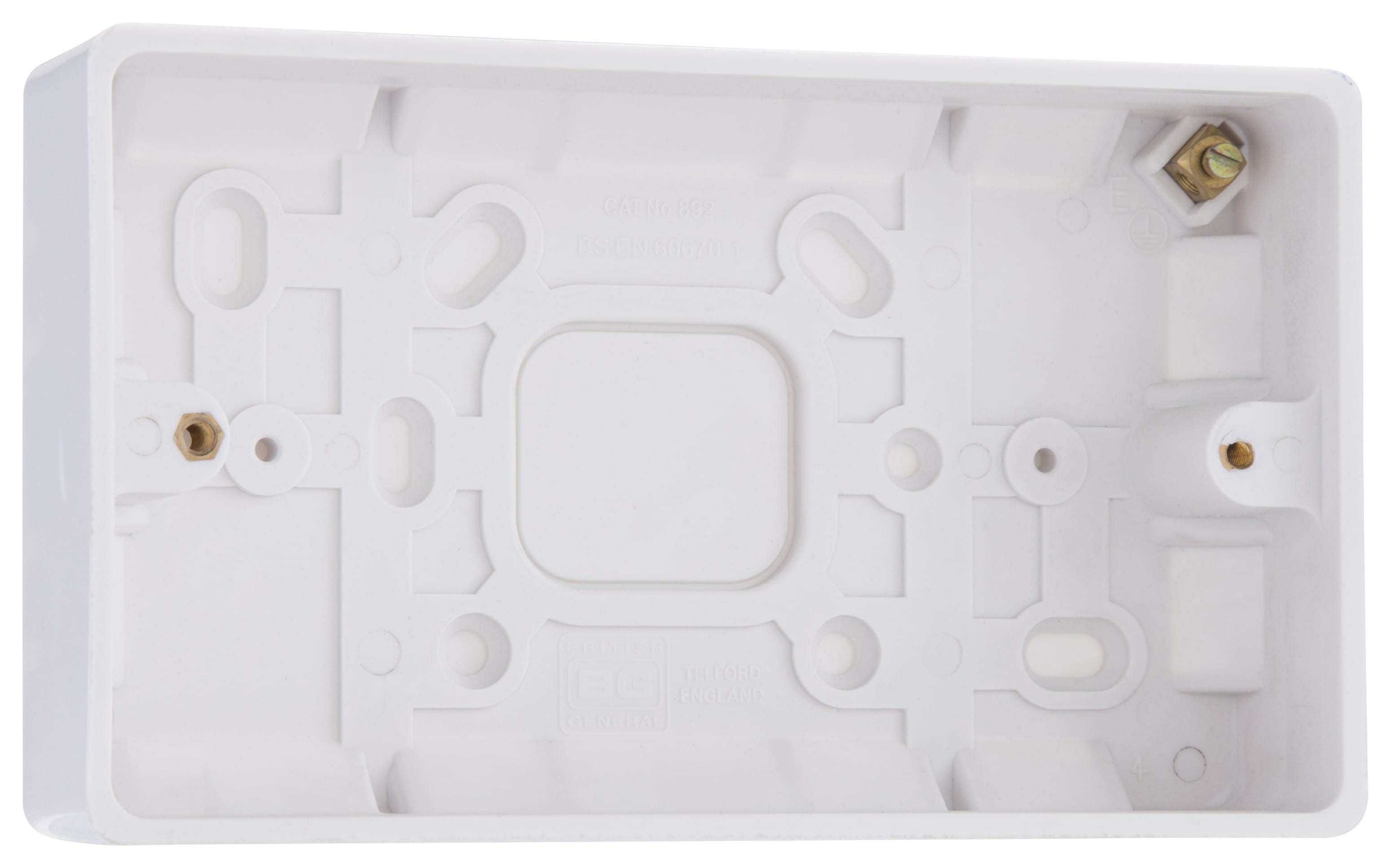 This BG White Surface Pattress Box is suitable for a 2 gang outlet. Made from PVC and with a depth of 32mm, it provides ample space to accommodate multiple electrical connections, switches, or sockets. Designed for hassle-free installation, it comes with pre-drilled mounting holes for quick and convenient setup.
