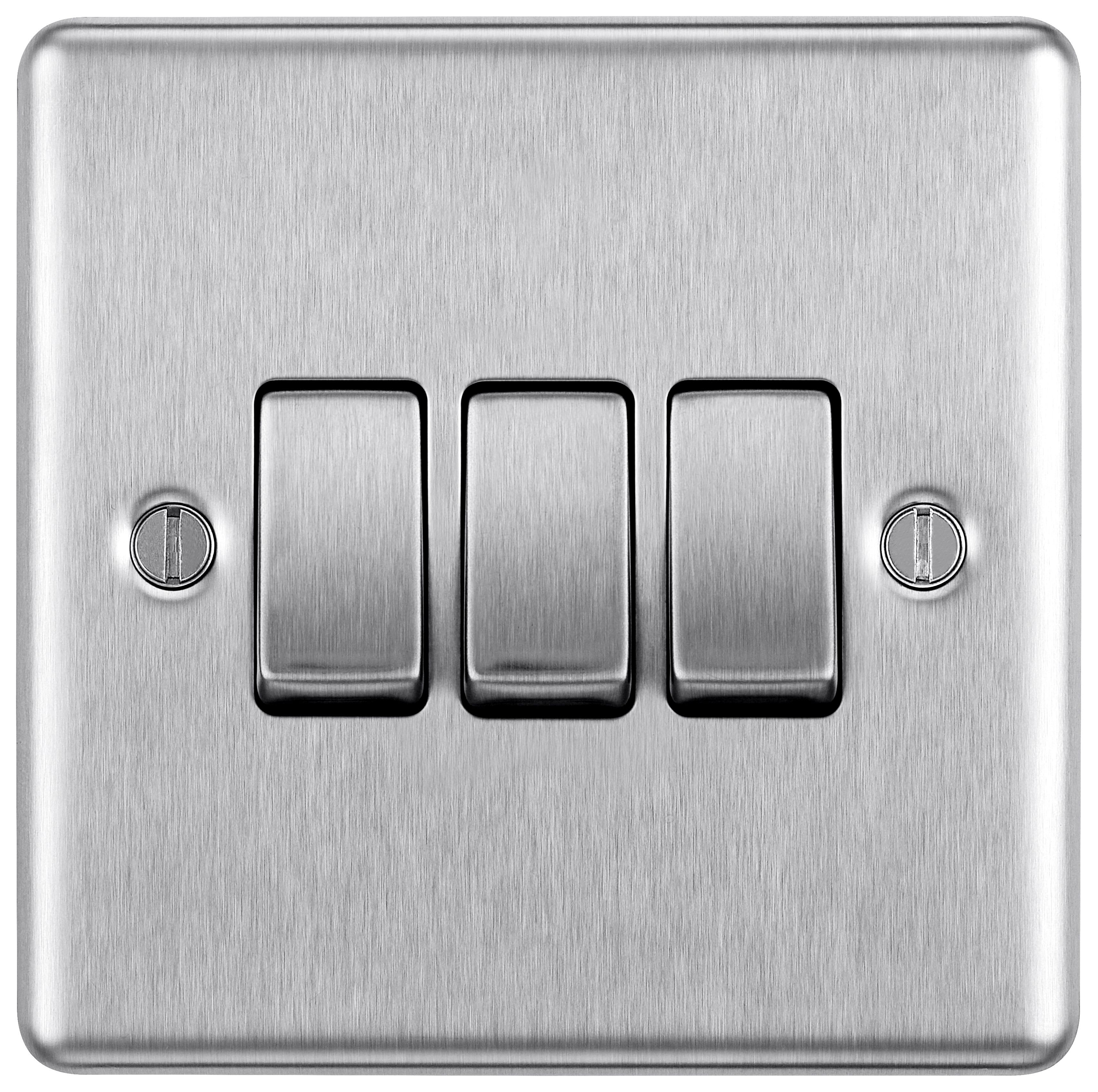 BG 2 Way 20A 16Ax Screwed Raised Plate Triple Switch - Brushed Steel