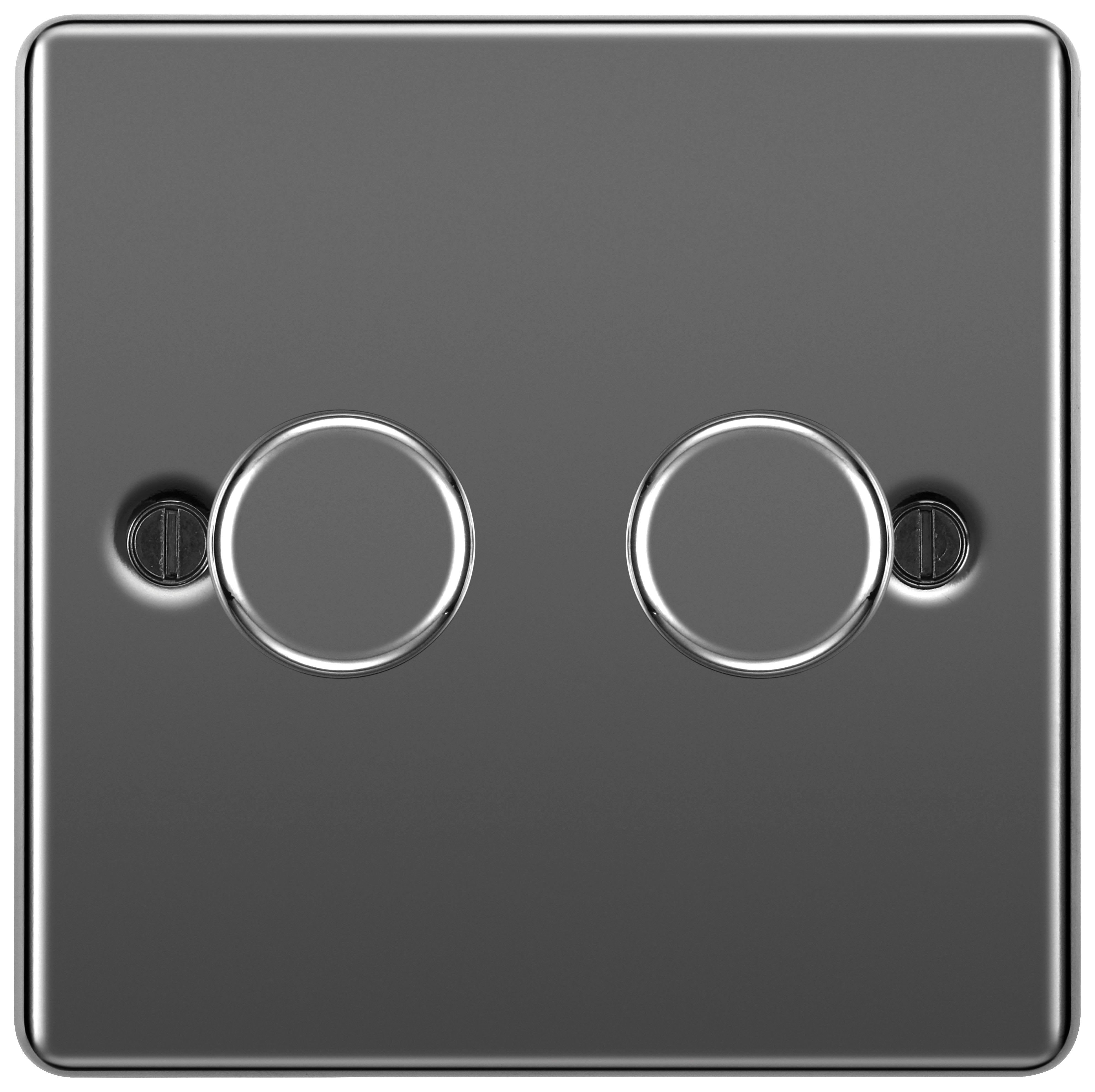 BG 400W 2 Way Push On / Off Screwed Raised Plate Double Dimmer Switch - Black Nickel
