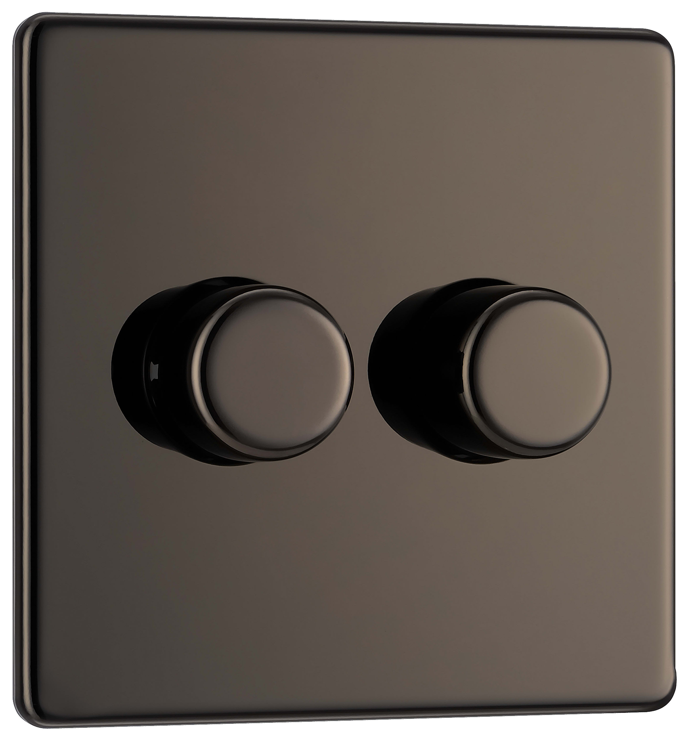 BG 400W 2 Way Push On / Off Screwless Flat Plate Double Dimmer Switch - Black Nickel