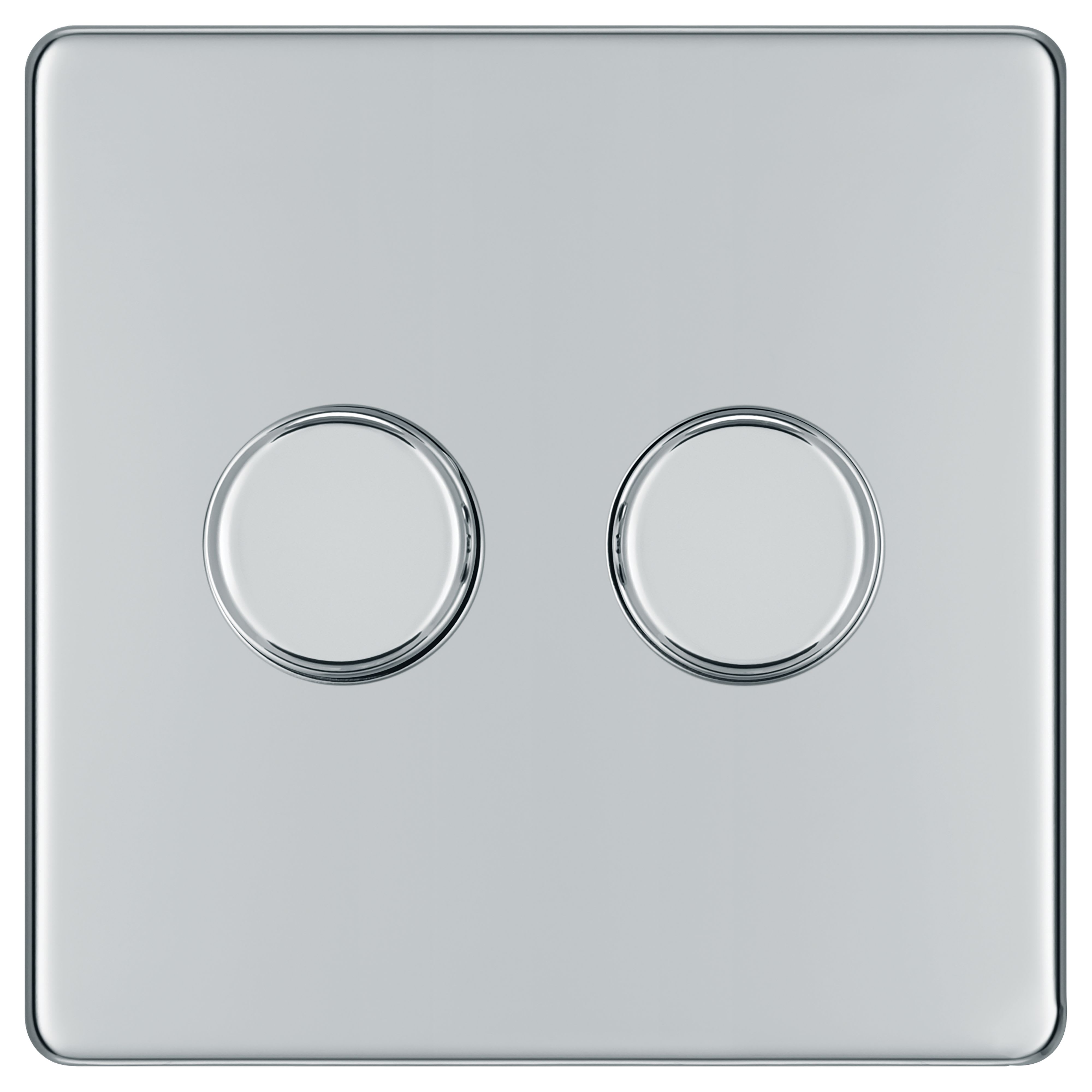 BG 400W 2 Way Push On / Off Screwless Flat Plate Double Dimmer Switch - Polished Chrome
