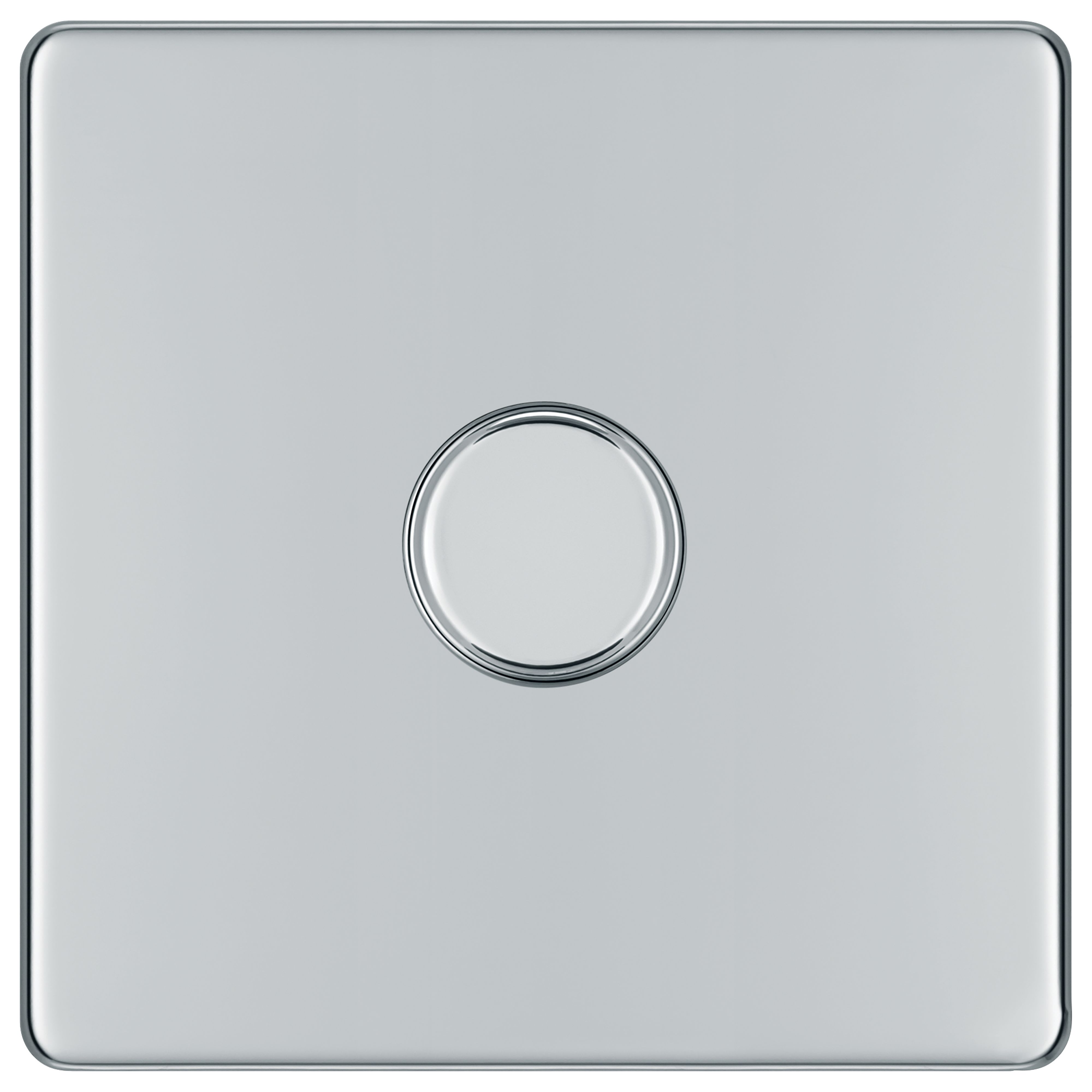 BG 400W 2 Way Push On / Off Screwless Flat Plate Single Dimmer Switch - Polished Chrome