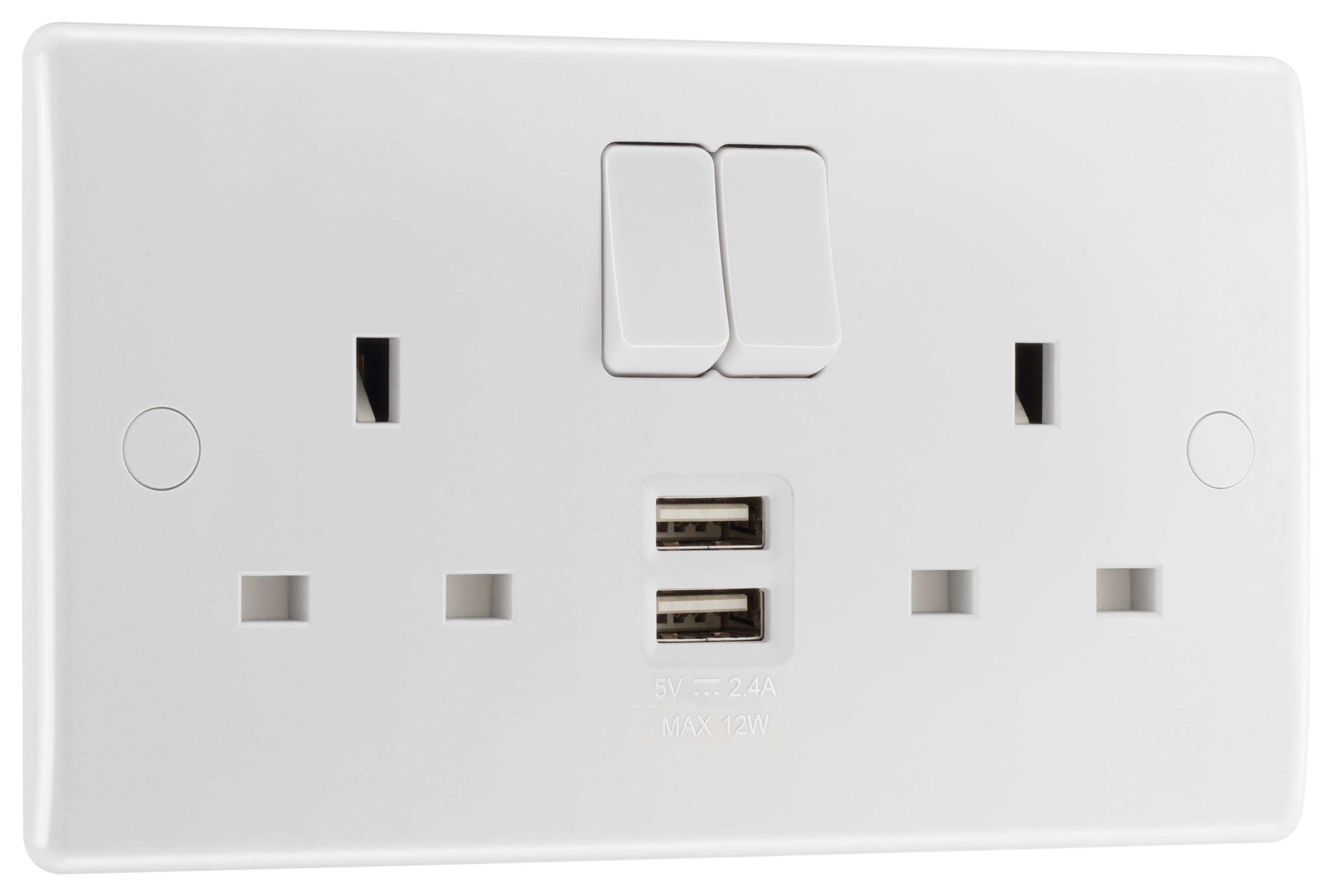 BG 800 Series 13A Double Switched Power Socket with USB A&A, 12W - White