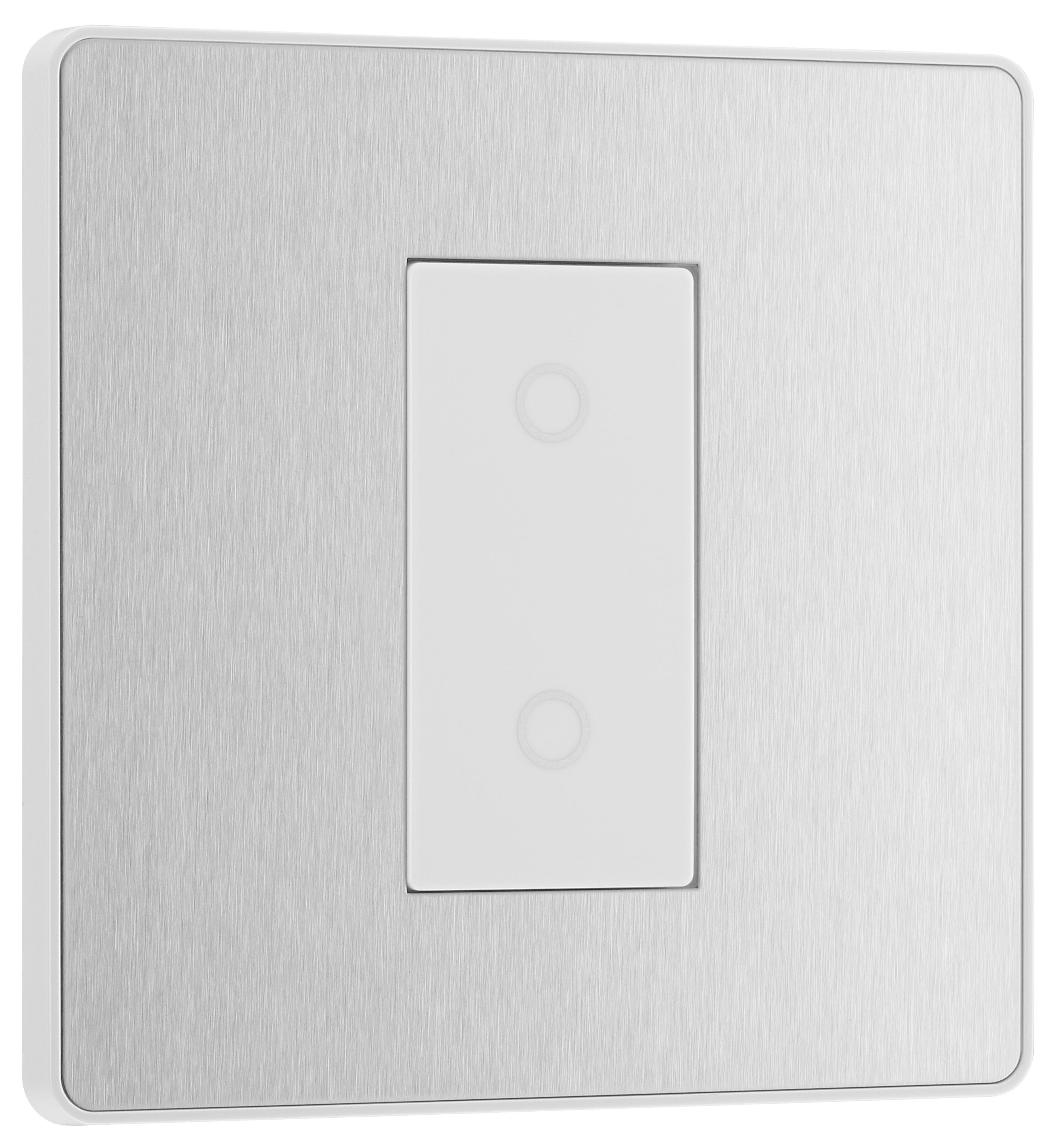 This BG Evolve Secondary Single Touch Dimmer Switch allows you to control your light levels and set the mood. The intelligent electronic circuit monitors the connected load and provides a soft-start with protection against thermal, current and voltage overload, and is suitable for dimming LED, dimmable CFL's and traditional lighting. The brushed steel finish adds a touch of contemporary elegance to any room, effortlessly complementing a wide range of interior design styles.