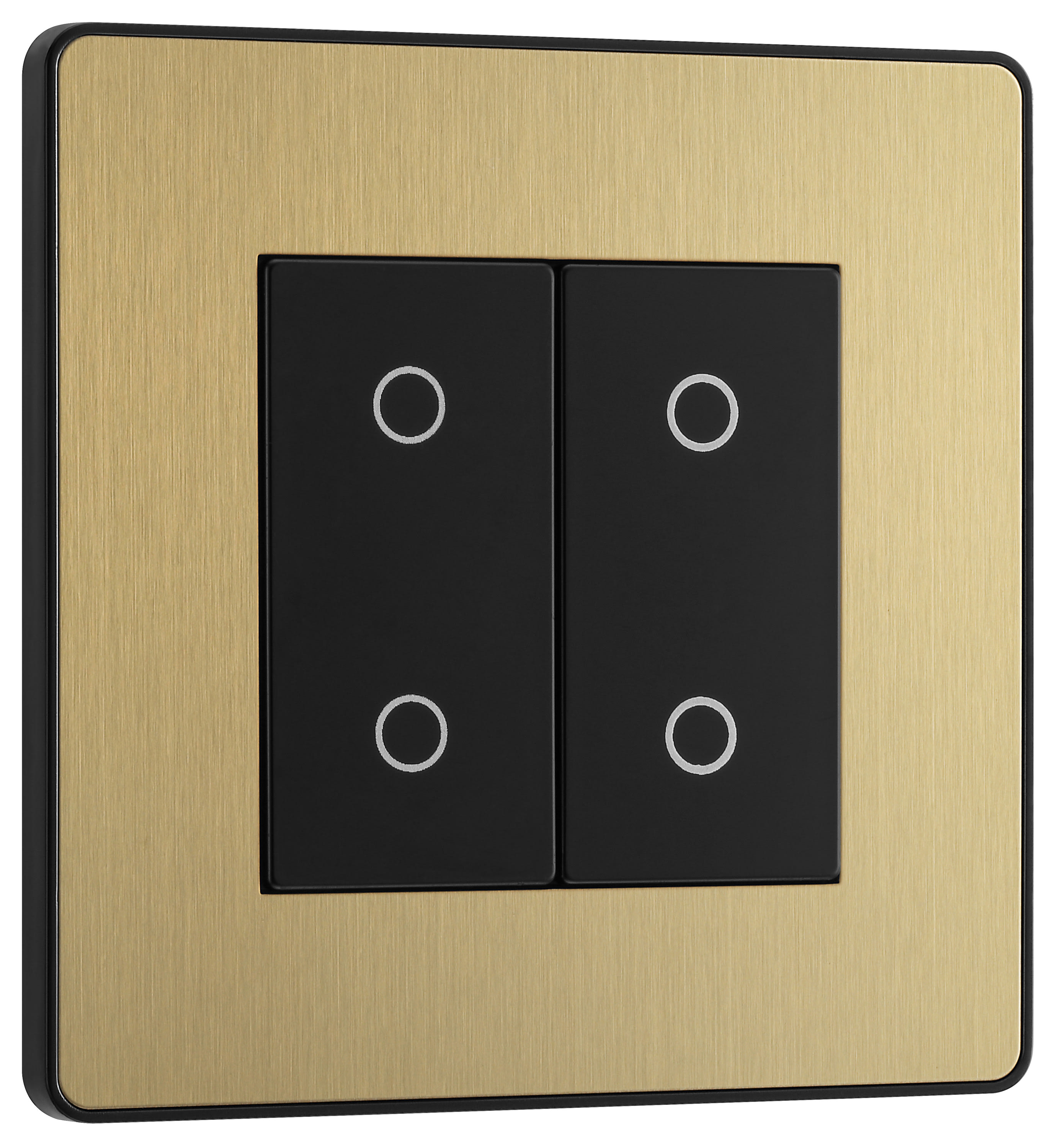 The BG Evolve Master Double Touch Dimmer Switch allows you to control your light levels and set the mood. The intelligent electronic circuit monitors the connected load and provides a soft-start with protection against thermal, current and voltage overload, and is suitable for dimming LED, dimmable CFL's and traditional lighting. This dimmer has a low profile screwless flat plate that clips on and off, making it ideal for modern interiors. The brushed brass finish exudes timeless luxury, adding a touch of opulence to any room.