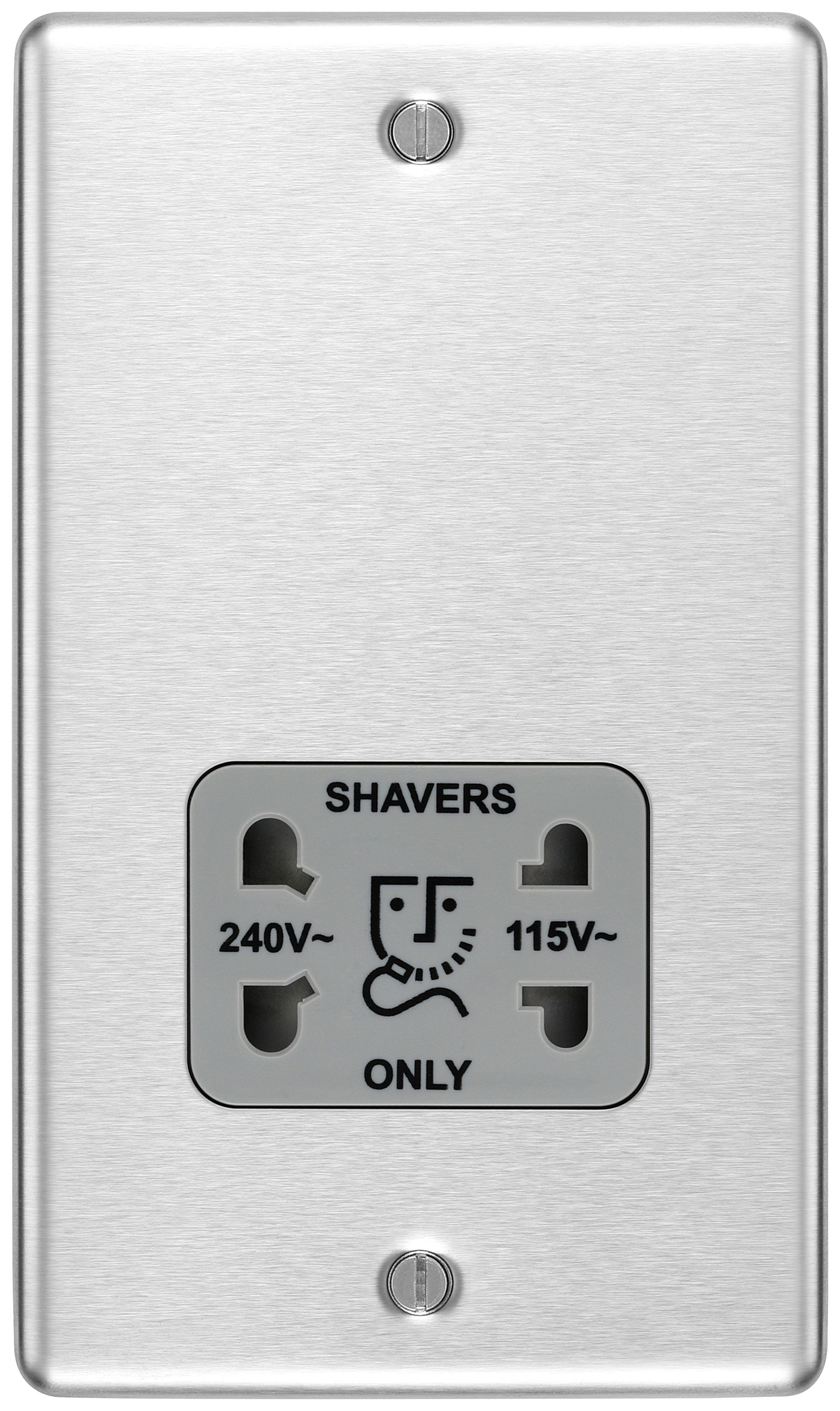 BG Screwed Raised Plate Dual Voltage Shaver Socket - Brushed Steel