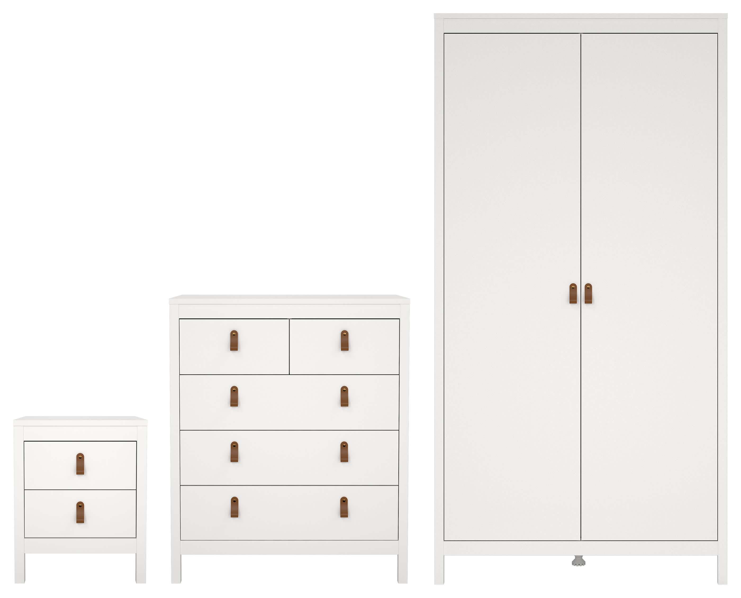 This package includes a 2 drawer bedside. 4 drawer chest of drawers and a 2 door wardrobe.