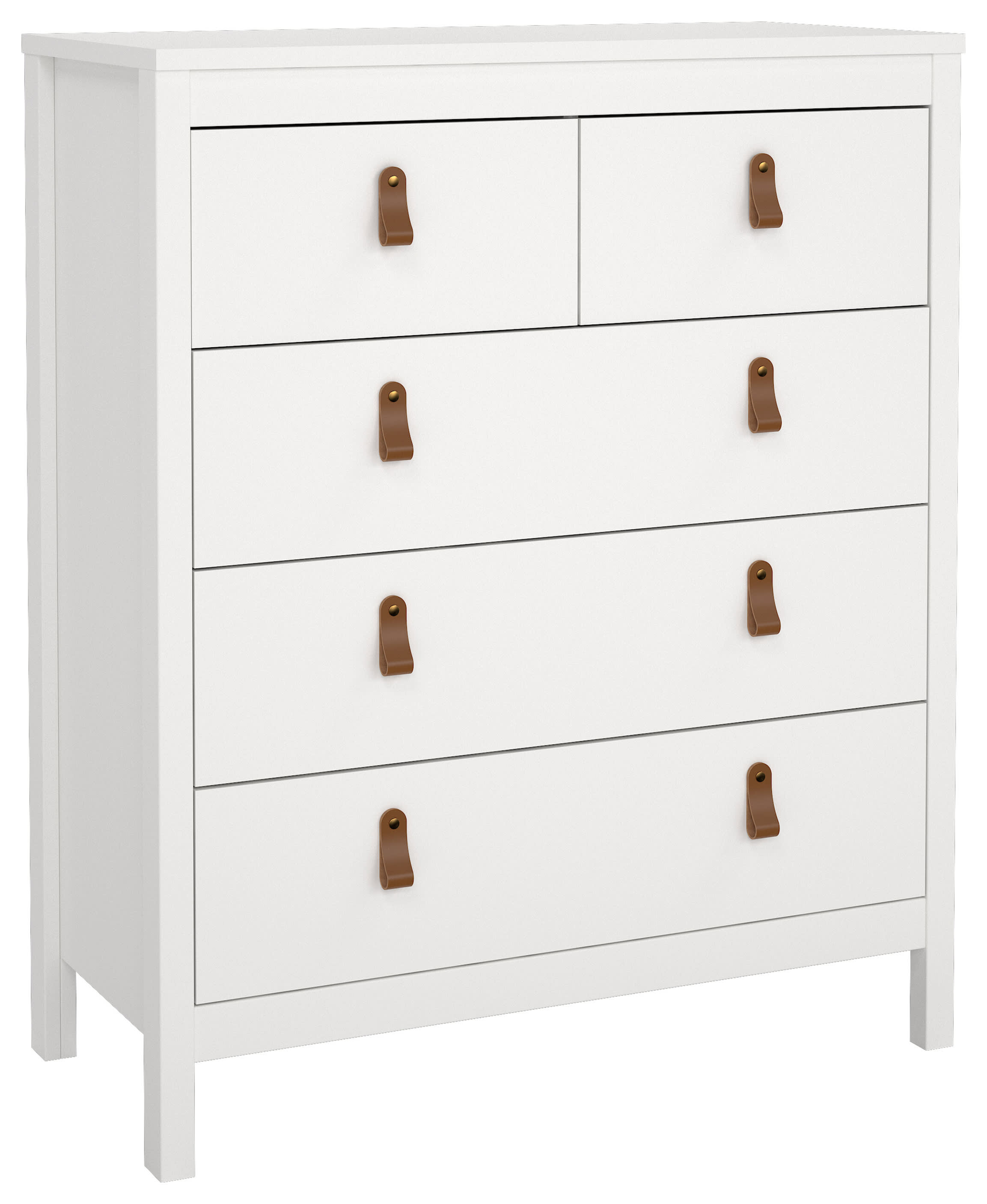 The Barcelona Chest offers a combination of three large drawers and two smaller drawers, providing ample storage for clothing, accessories, and personal items. Crafted with high-quality materials, it ensures durability and long-lasting use. The drawers are equipped with metal glide runners for easy and quiet operation. With a stylish appearance available in various finishes and colors, this dresser complements any bedroom decor.