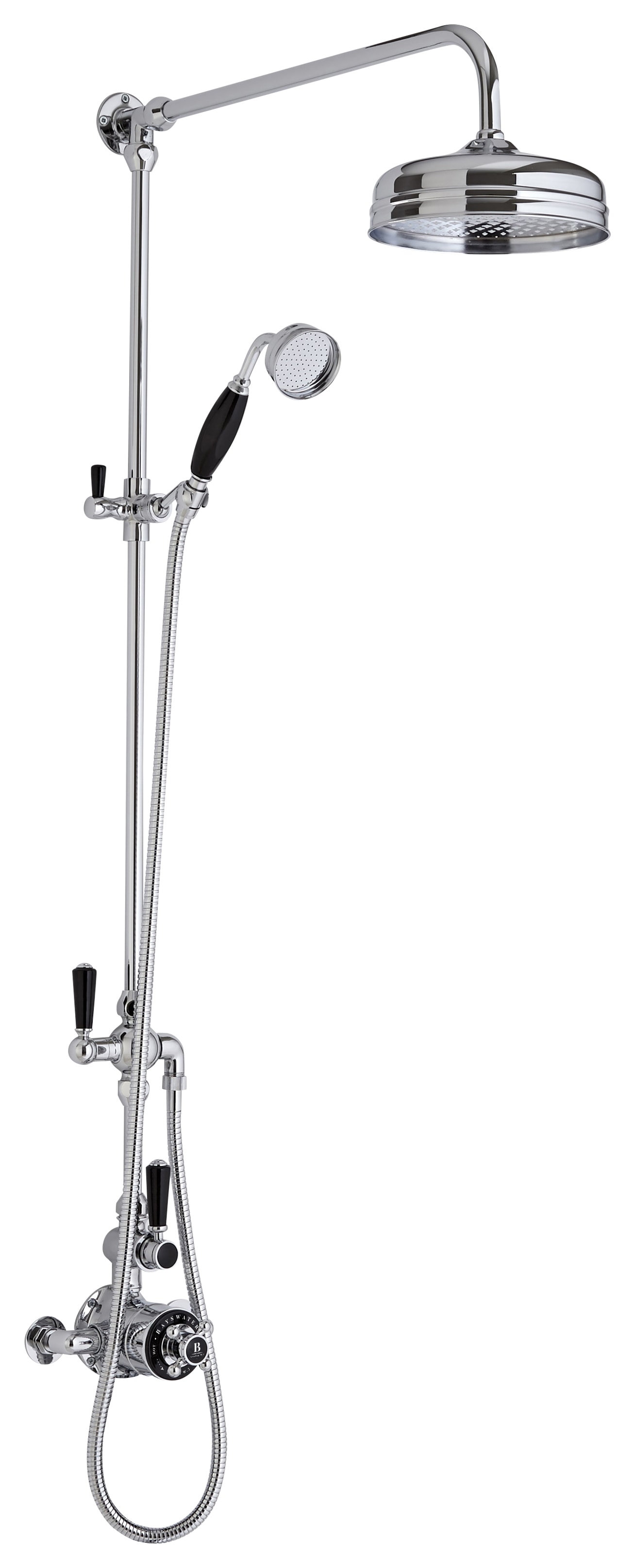 Bayswater Grand Riser Mixer Shower Kit with Exposed Valve - Black & Chrome