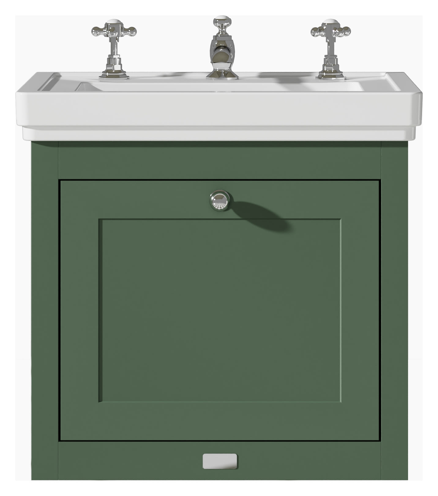 Bayswater Hartleigh Hunter Green Traditional Wall HUng Vanity Unit & 3 Tap Hole White Recessed Basin - 500mm