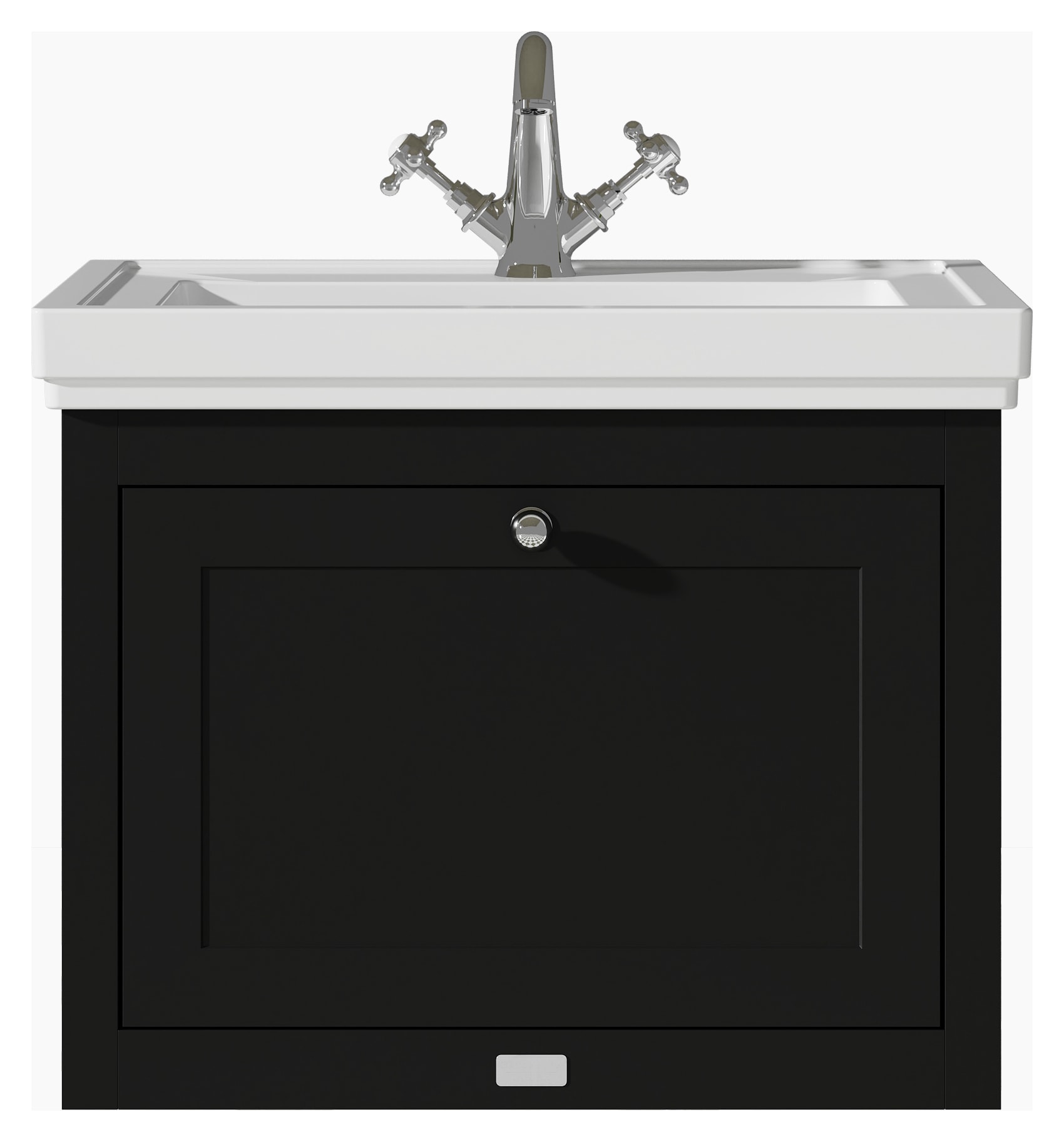 Bayswater Hartleigh Matt Black Traditional Wall Hung Vanity Unit & 1 Tap Hole Traditional Recessed Basin - 600mm