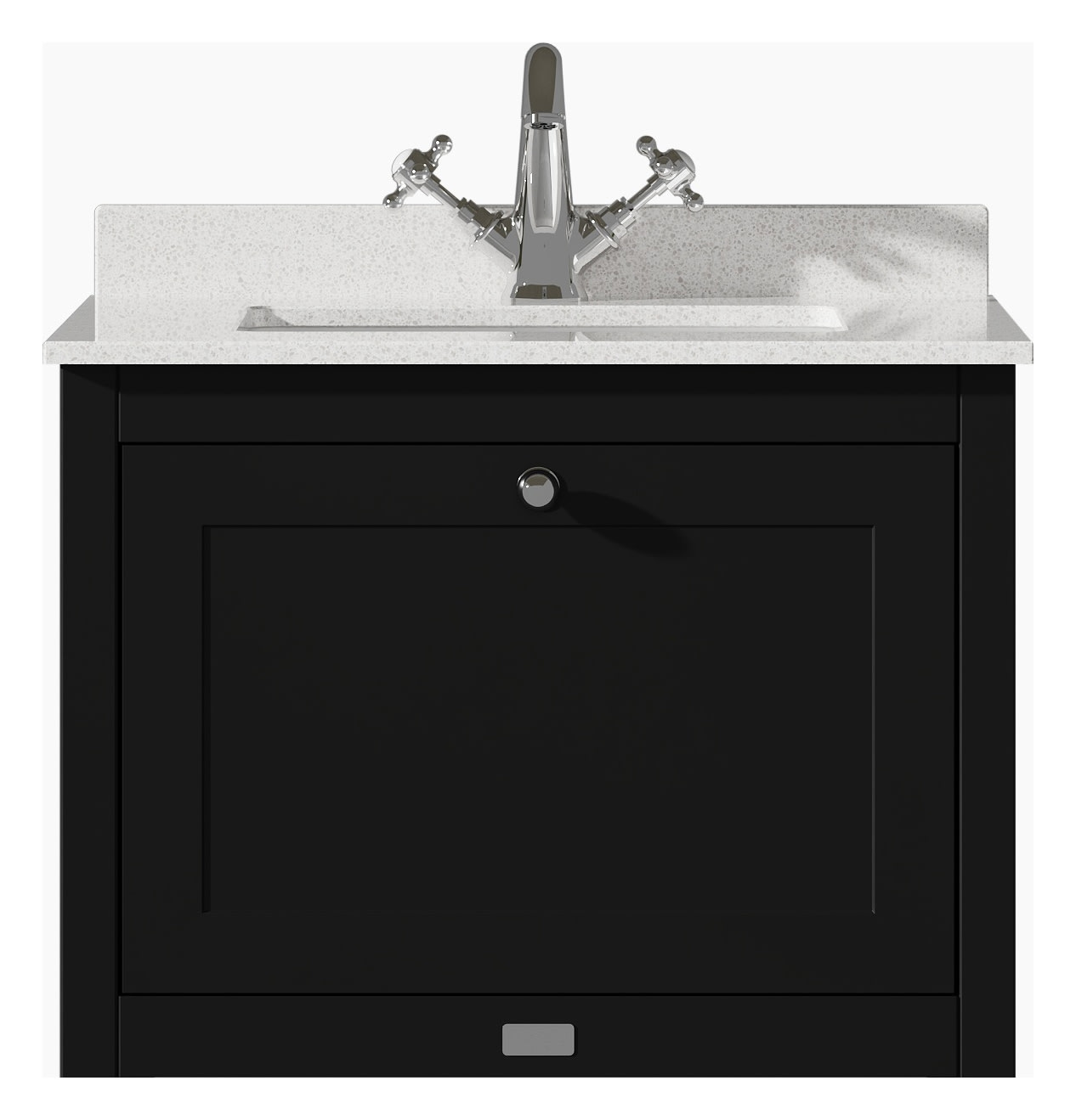 Bayswater Hartleigh Matt Black Traditional Wall Hung Vanity Unit & 1 Tap Hole White Marble Top Basin - 600mm