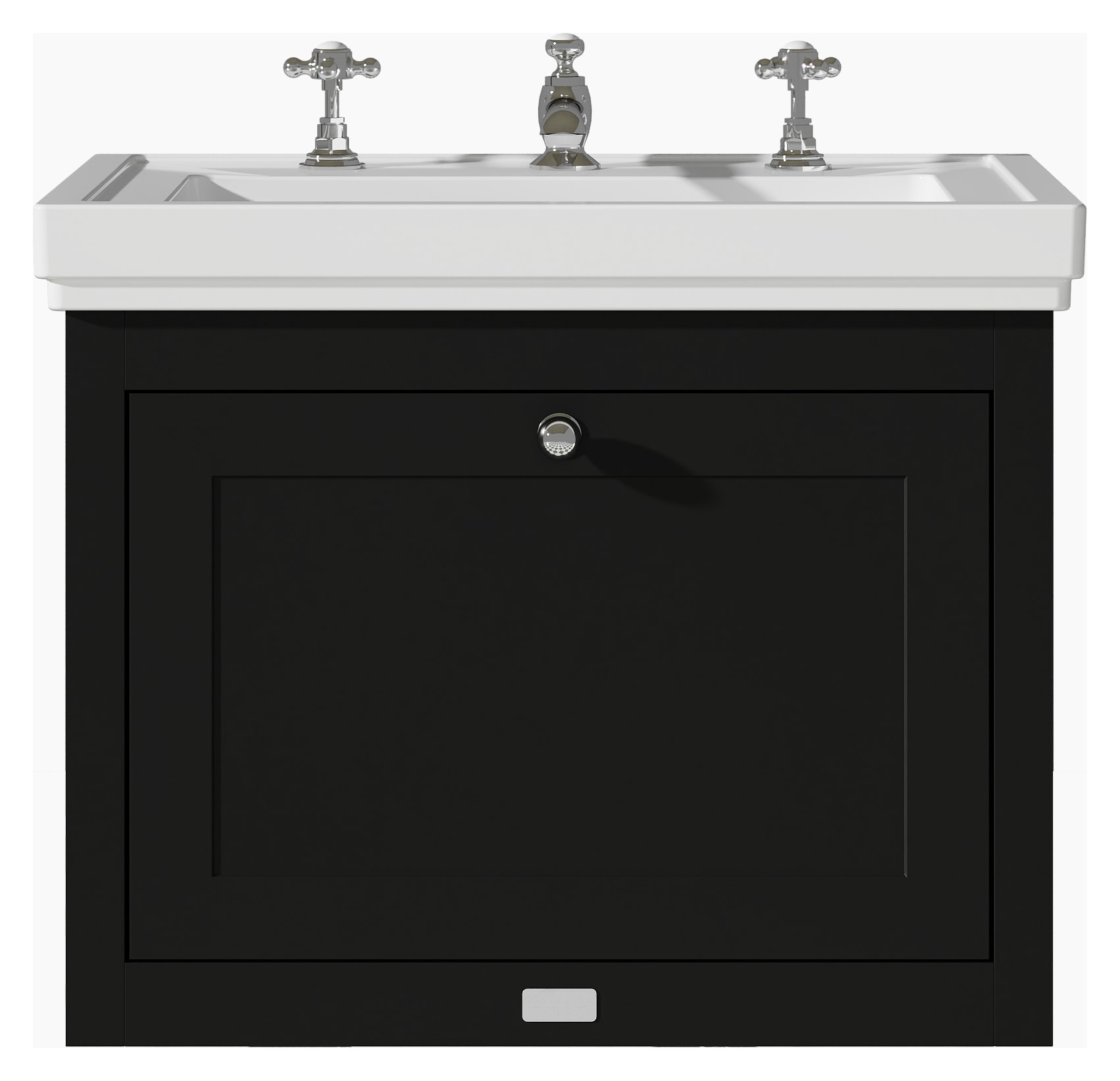 Bayswater Hartleigh Matt Black Traditional Wall Hung Vanity Unit & 3 Tap Hole Traditional Recessed Basin - 600mm