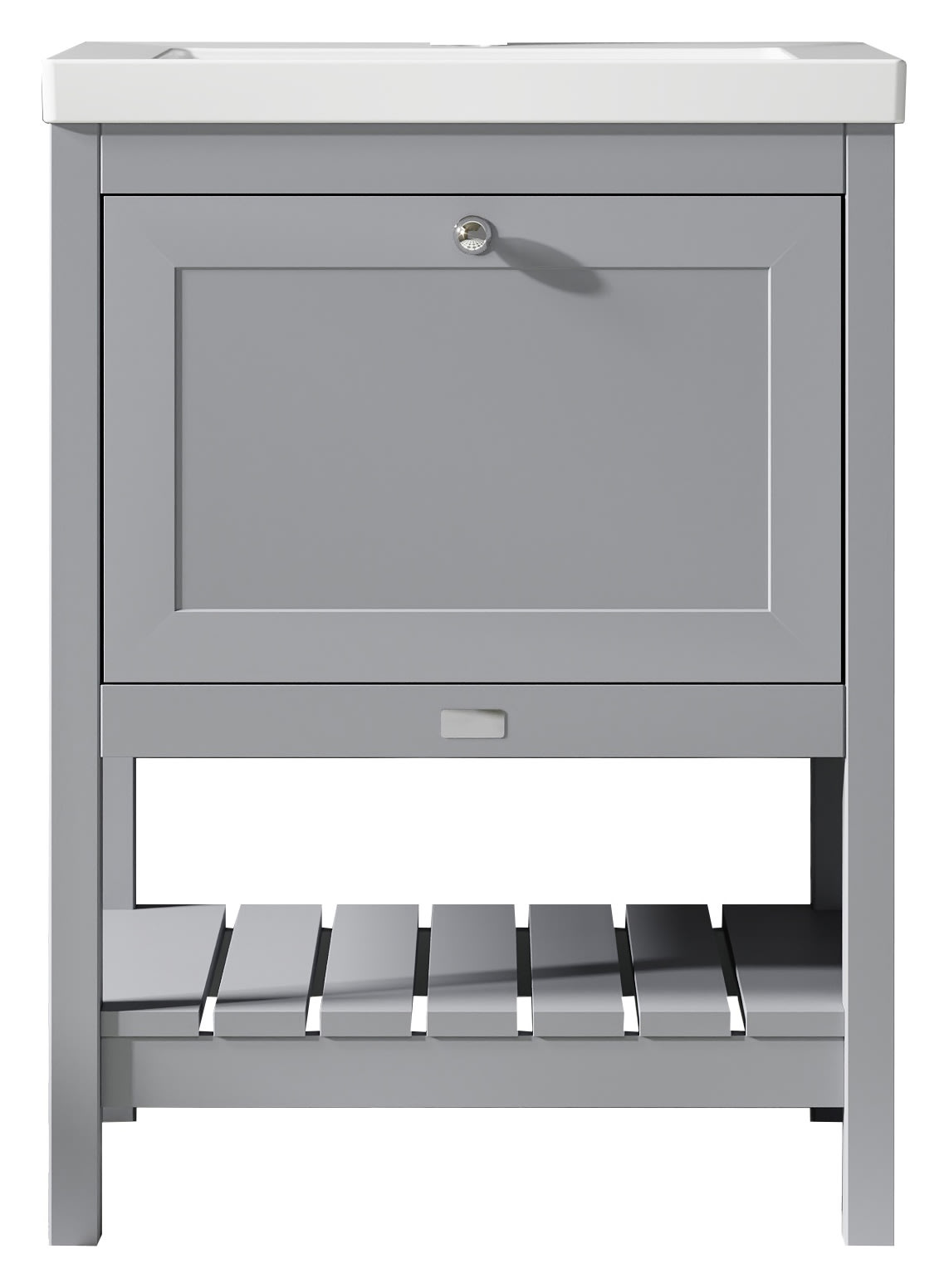 Bayswater Hartleigh Plummett Grey Traditional Freestanding Vanity Unit & 1 Tap Hole Modern Recessed Basin - 600mm