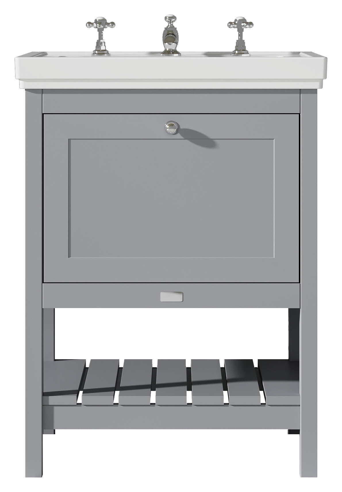 Bayswater Hartleigh Plummett Grey Traditional Freestanding Vanity Unit & 3 Tap Hole Traditional Recessed Basin - 600mm