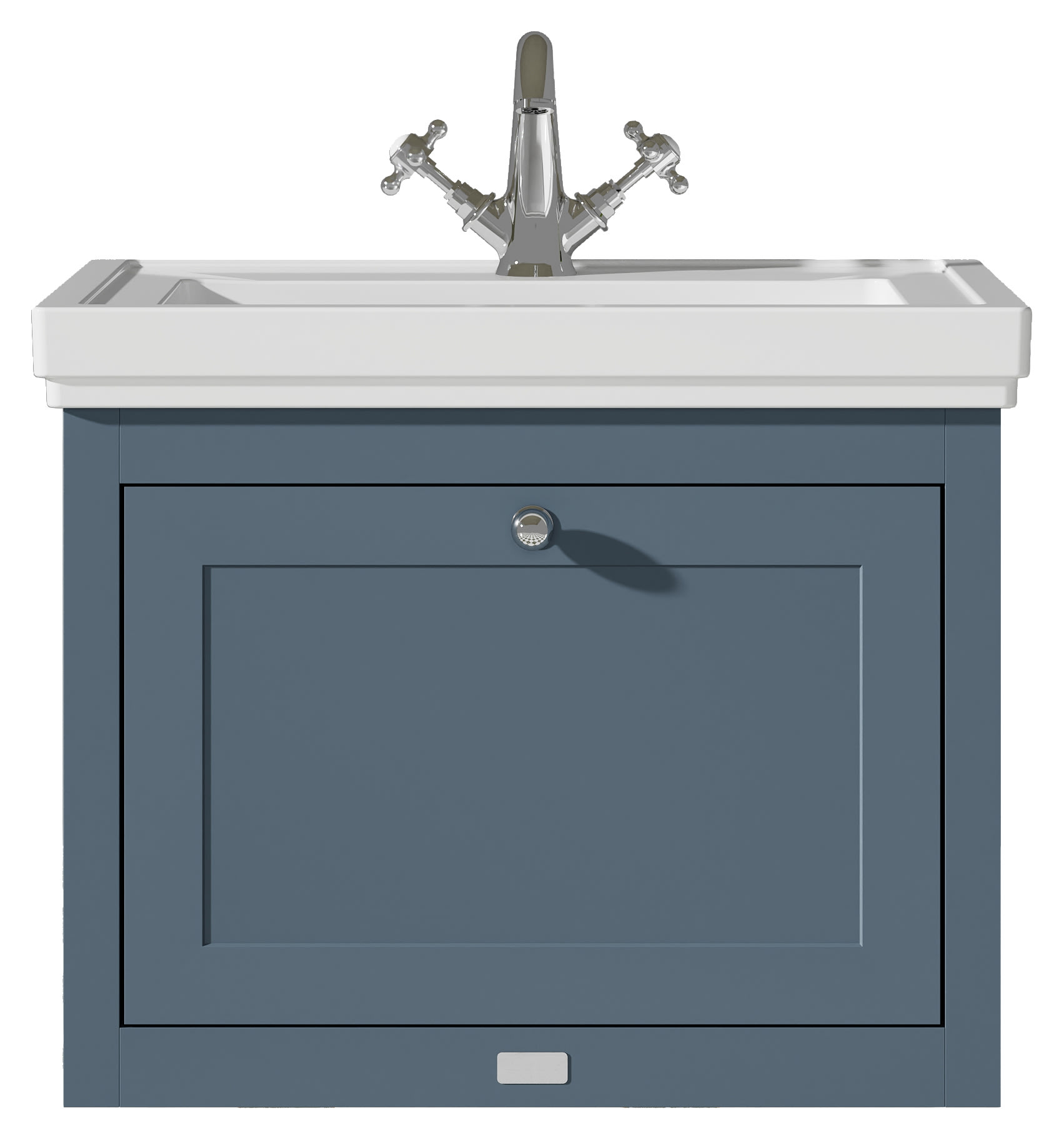 Bayswater Hartleigh Stiffkey Blue Traditional Wall Hung Vanity Unit & 1 Tap Hole Traditional Recessed Basin - 600mm