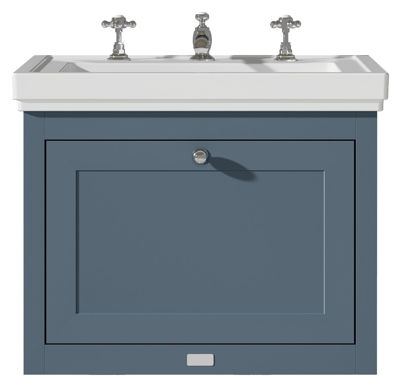 Bayswater Hartleigh Stiffkey Blue Traditional Wall Hung Vanity Unit & 3 Tap Hole Traditional Recessed Basin - 600mm