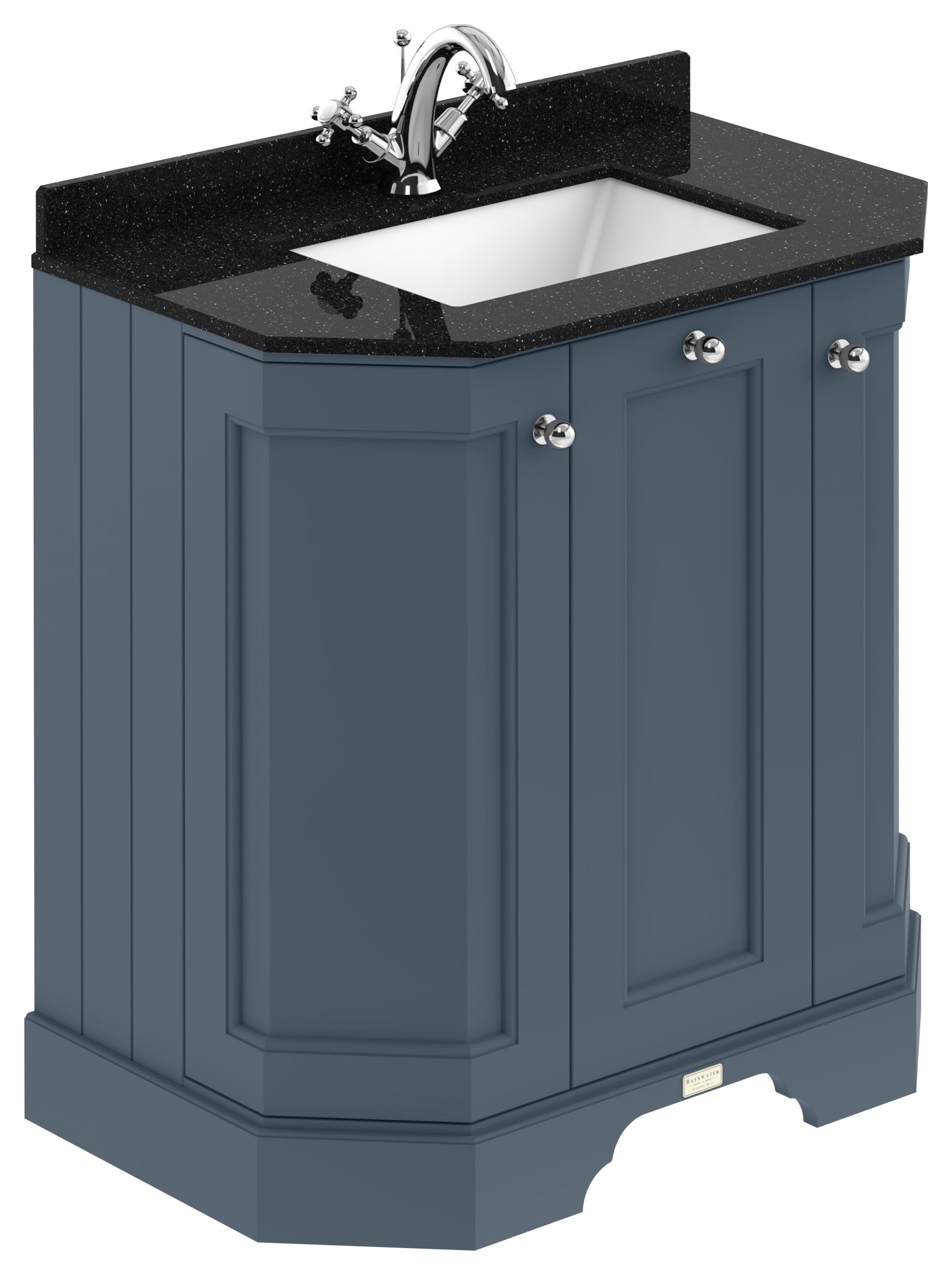 Bayswater Victrion Stiffkey Blue Angled Traditional Freestanding Vanity Unit & Black Marble Top Basin - 750mm