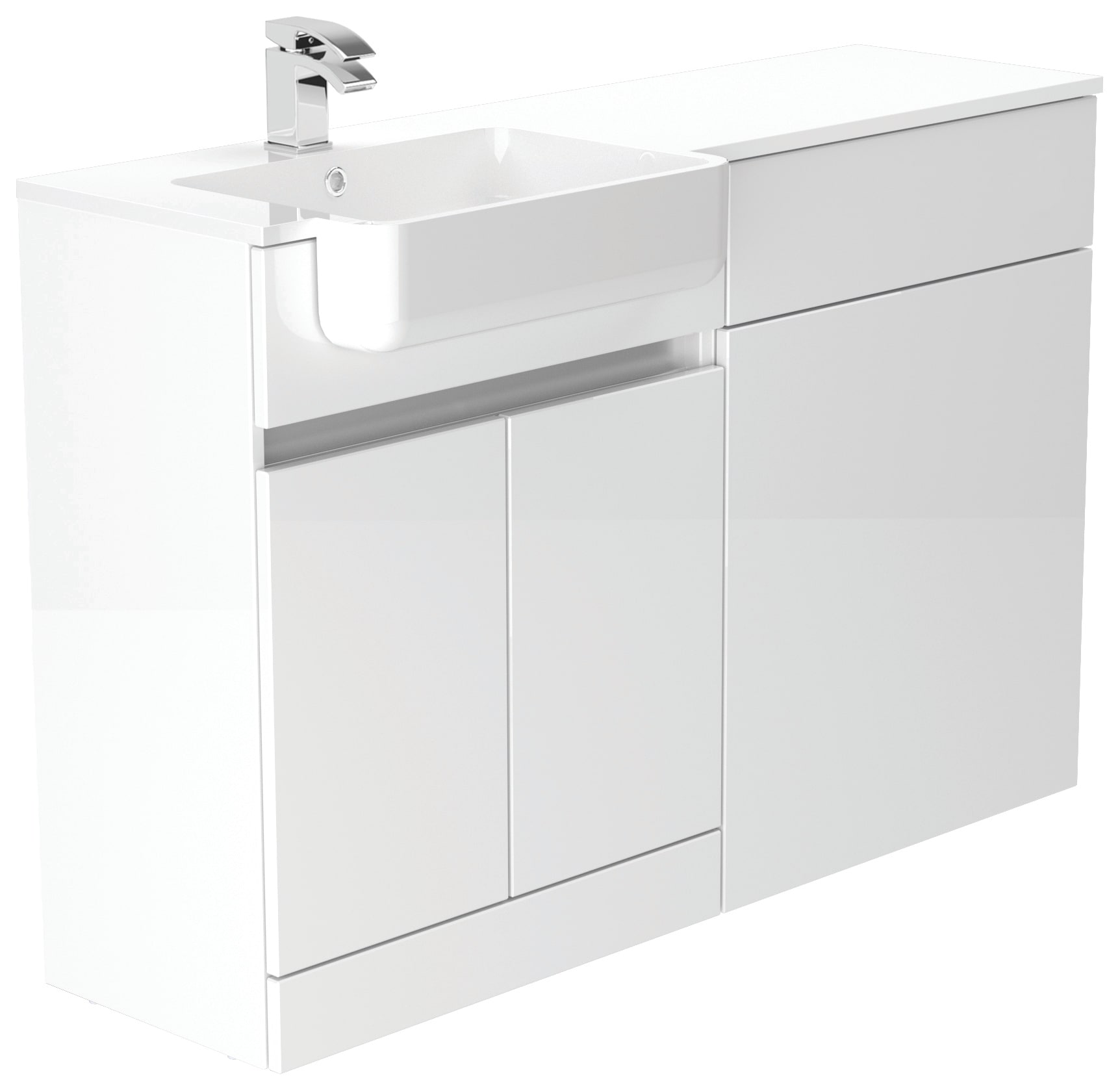 Be Modern Botanica Gloss White Left Hand 1260mm Freestanding Vanity & Toilet Pan Unit with Basin Modular Combination