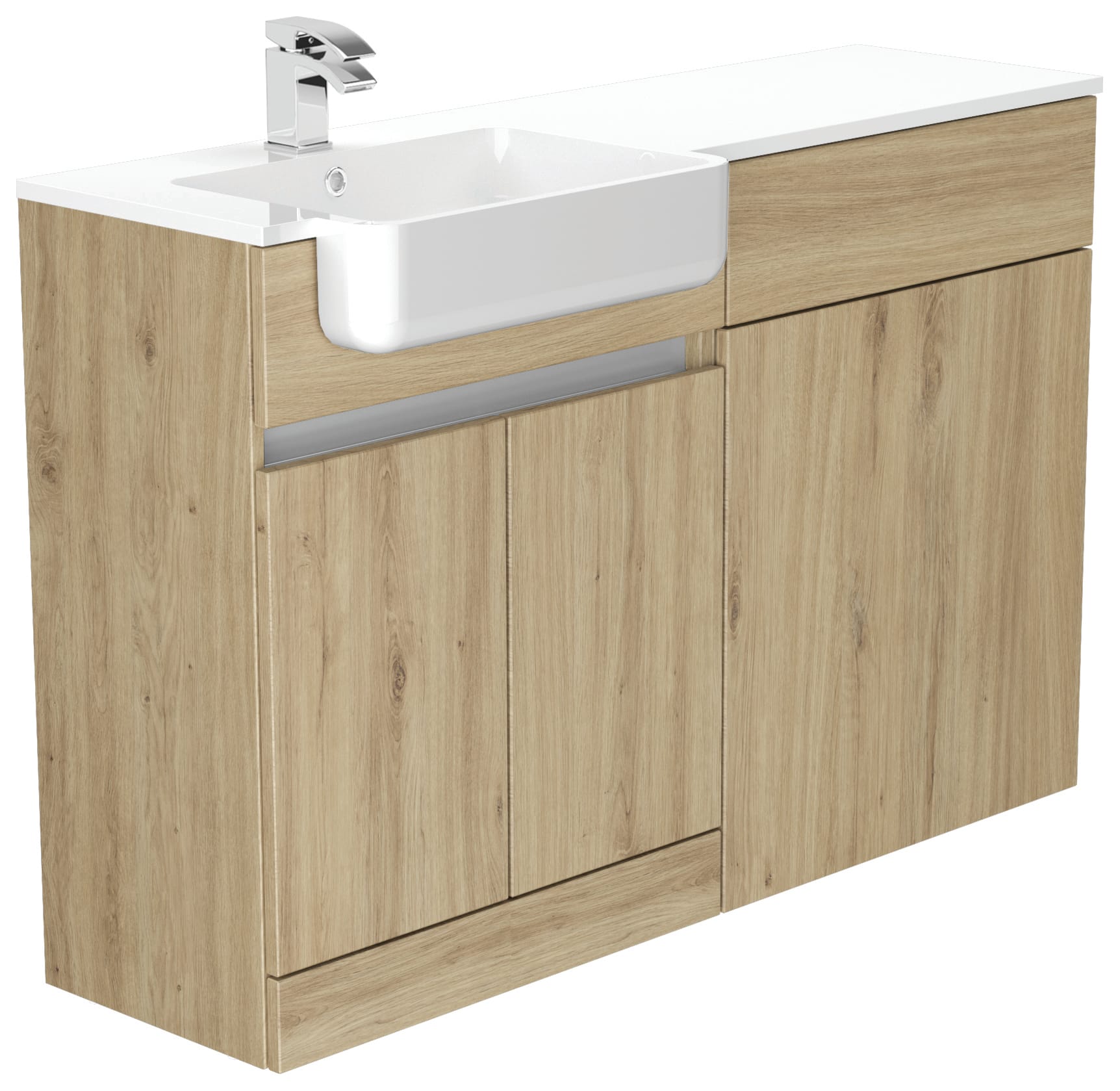 Be Modern Botanica Natural Oak Left Hand 1260mm Freestanding Vanity & Toilet Pan Unit with Basin Modular Combination