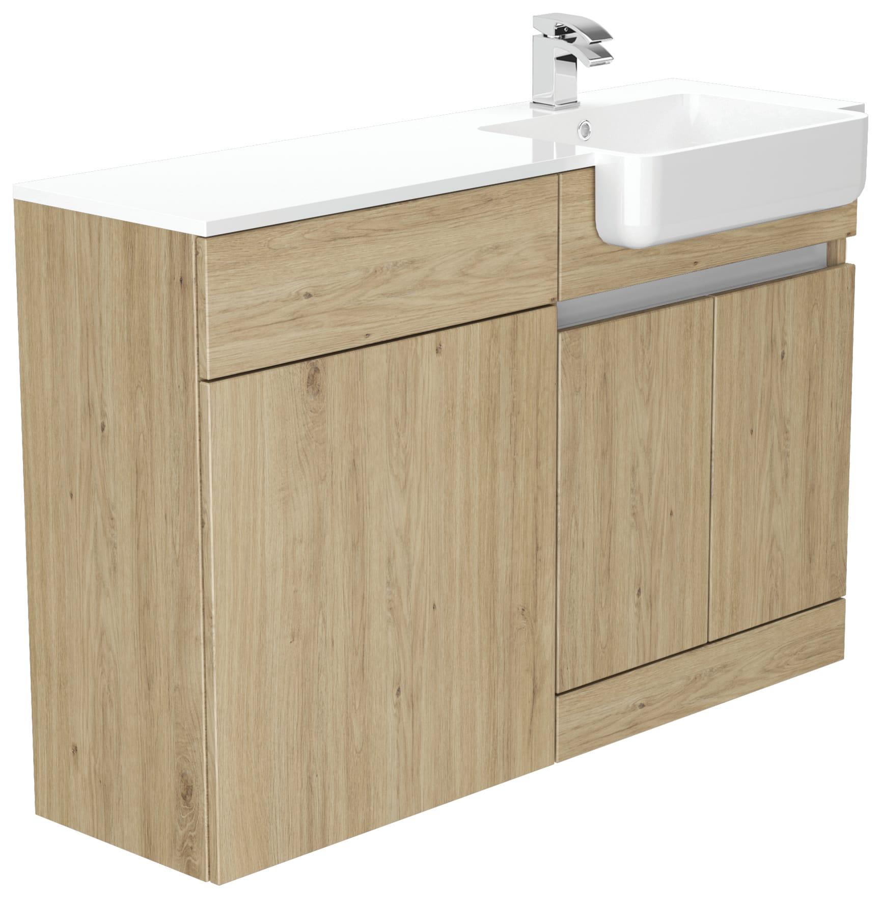 Be Modern Botanica Natural Oak Right Hand 1260mm Freestanding Vanity & Toilet Pan Unit with Basin Modular Combination