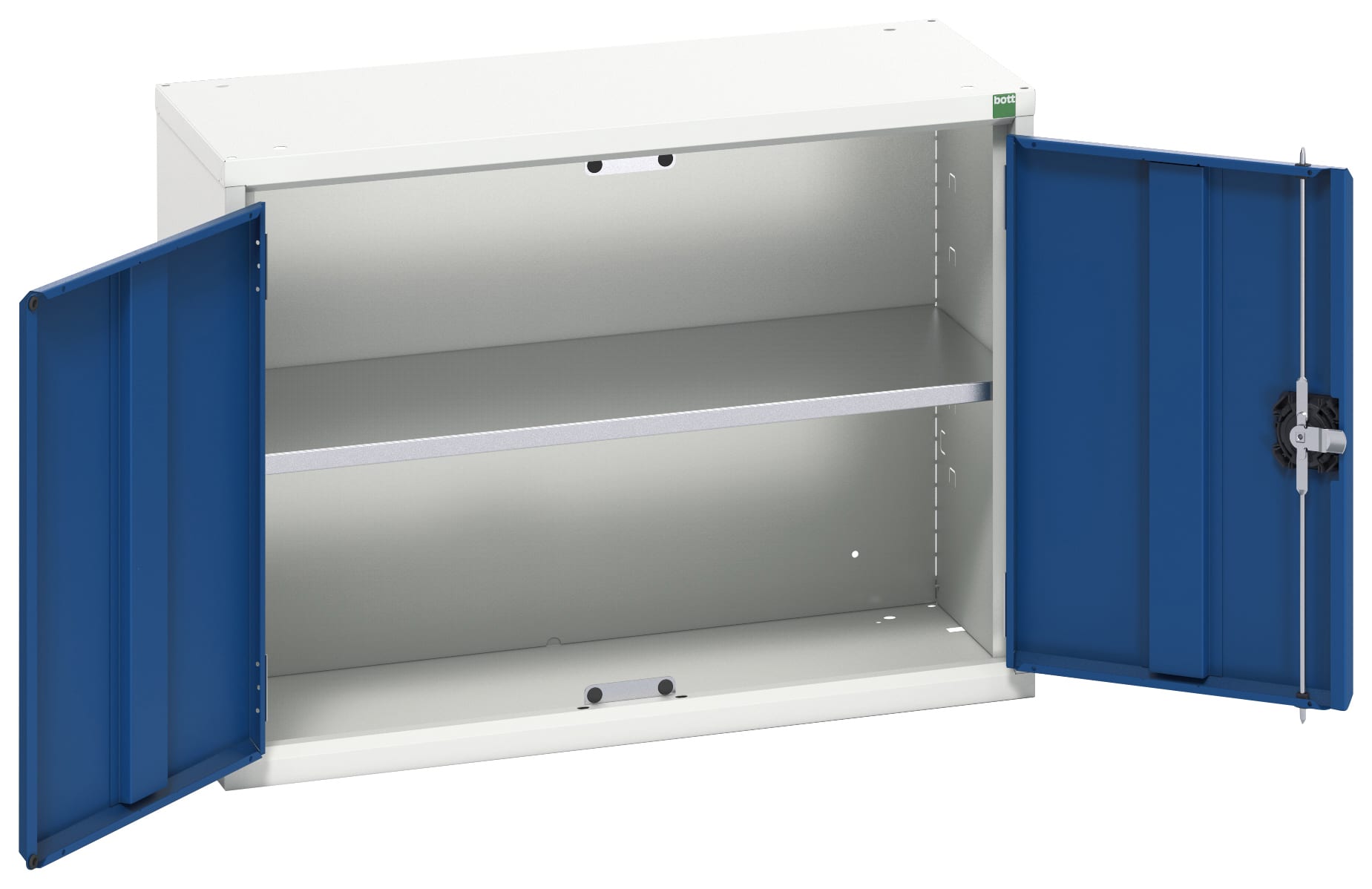 This Bott Verso Economy Cupboard is made from durable steel housing and finished in durable powder coat paint (RAL 7035 light grey and RAL 5010 gentian blue). It has 1 height adjustable, galvanised steel shelf (35kg U.D.L.). The cupboard can be fixed onto walls to maximise the use of space in the workplace.