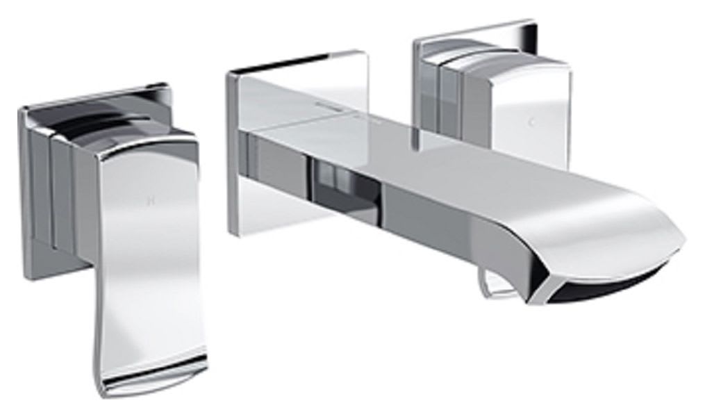 The Descent Wall Mounted Chrome Basin Mixer Tap is perfect if you're wanting to add some drama to your bathroom. The Descent collection with its wide spouts create a luxurious cascade effect, perfect for any modern bathroom.