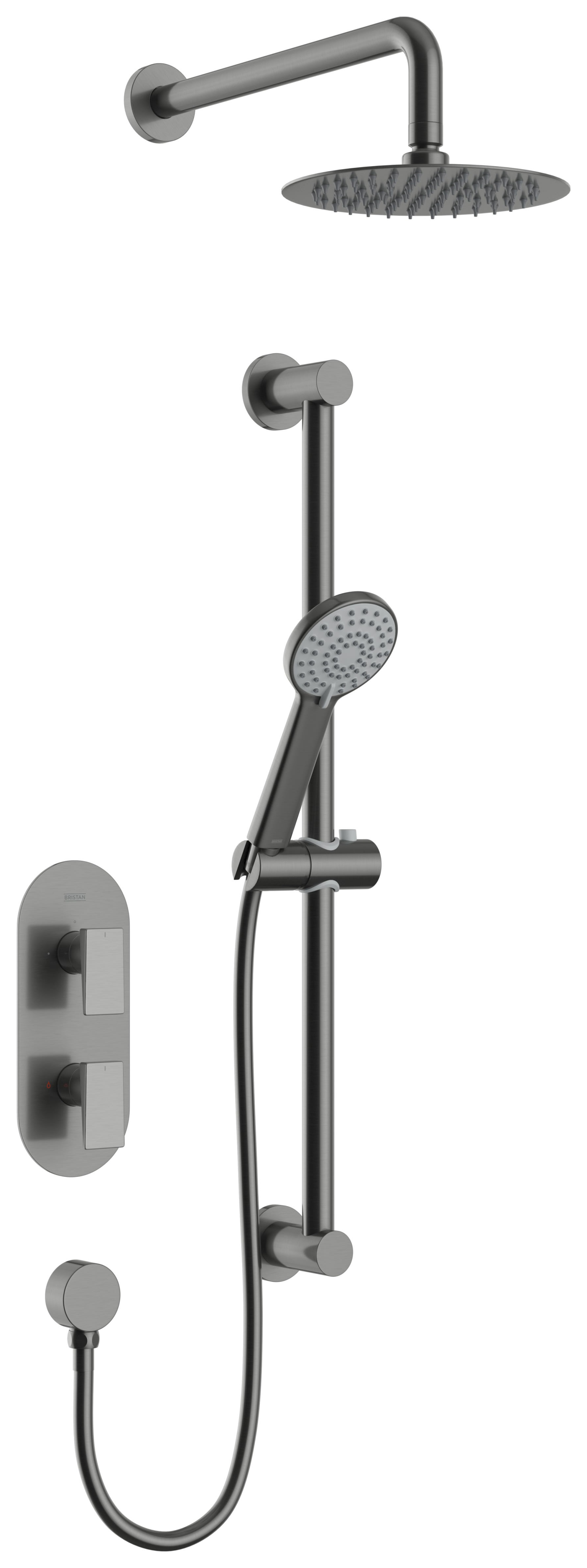 - On-trend brushed Anthracite finish; Coordinates with other products from the Bristan range