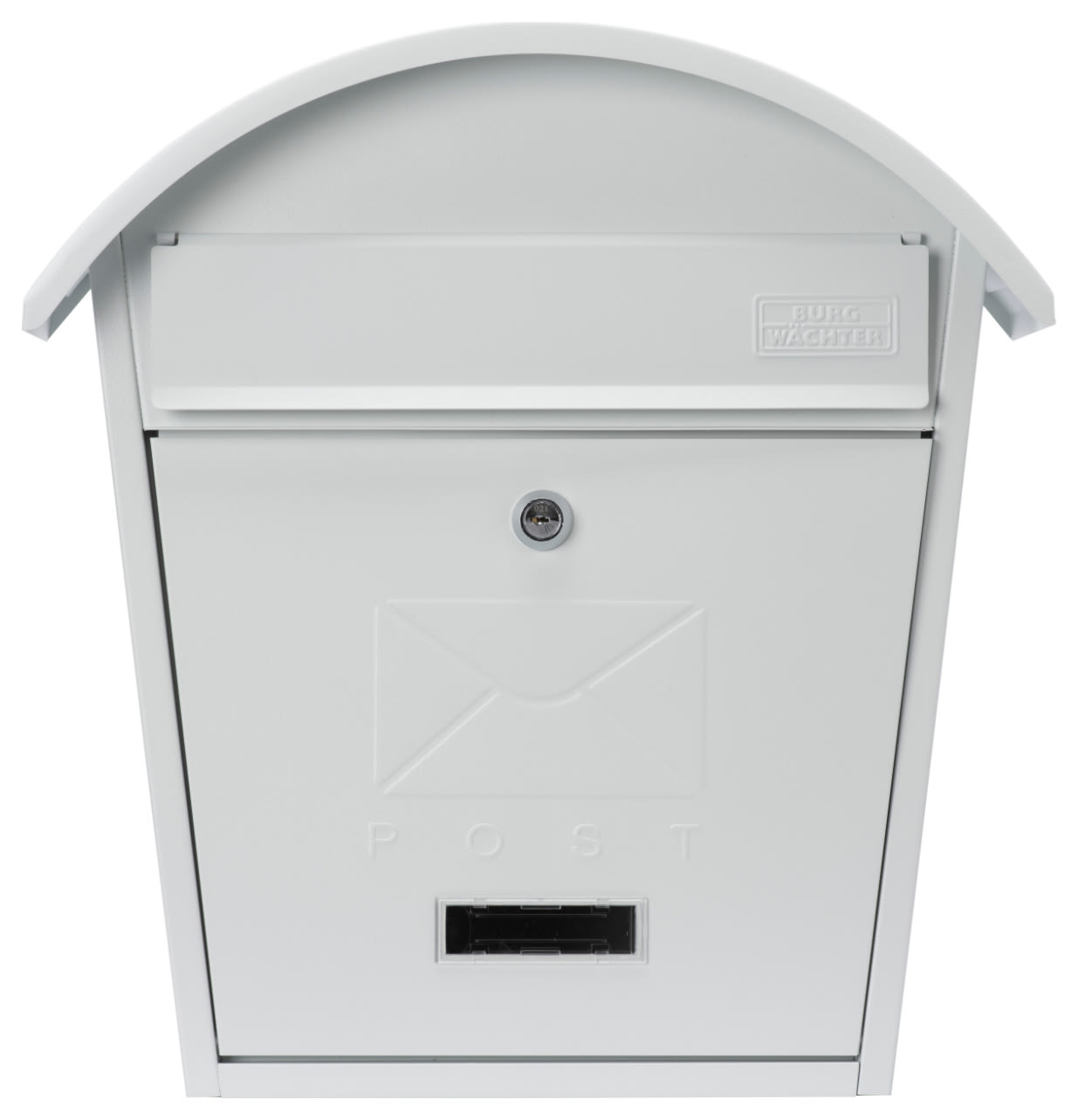 This post box is made from strong galvanised steel with a tough powder coating. There is a front slot for posting and the letter flap opens outwards for improved weather protection. The slot is of a narrow style, which reduces the risk of mail being removed once posted. It comes with a secure lock and 2 keys. Sterling MB06, in white, Dimensions 370mm x 363mm x 134mm & 1 in a box.