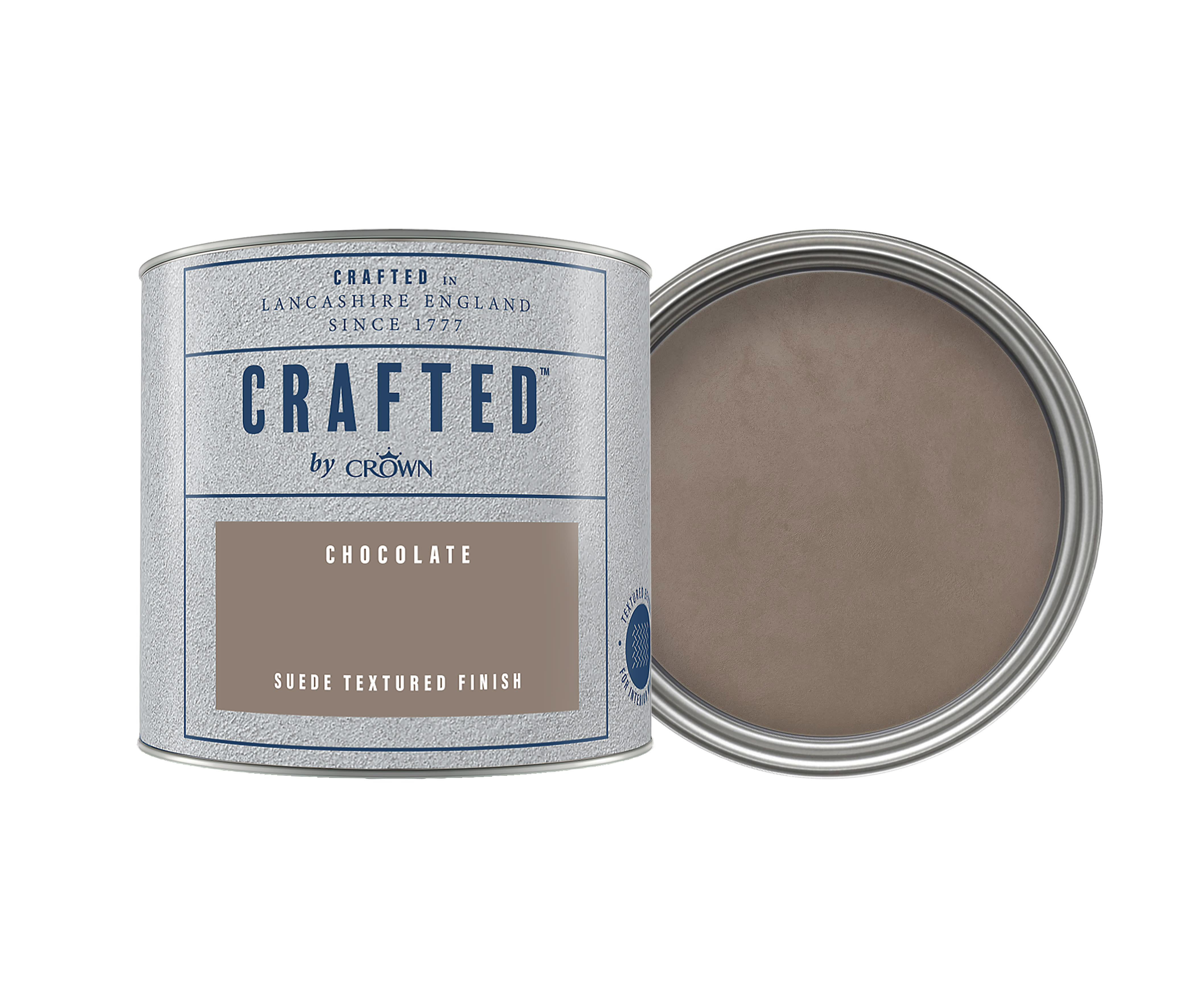 This CRAFTED™ by Crown paint is a suede textured finish in the colour Chocolate and is compatible with interior walls. This formulation incorporates ground olive stones to create a soft, natural brushed effect which will immediately change the look of your home.