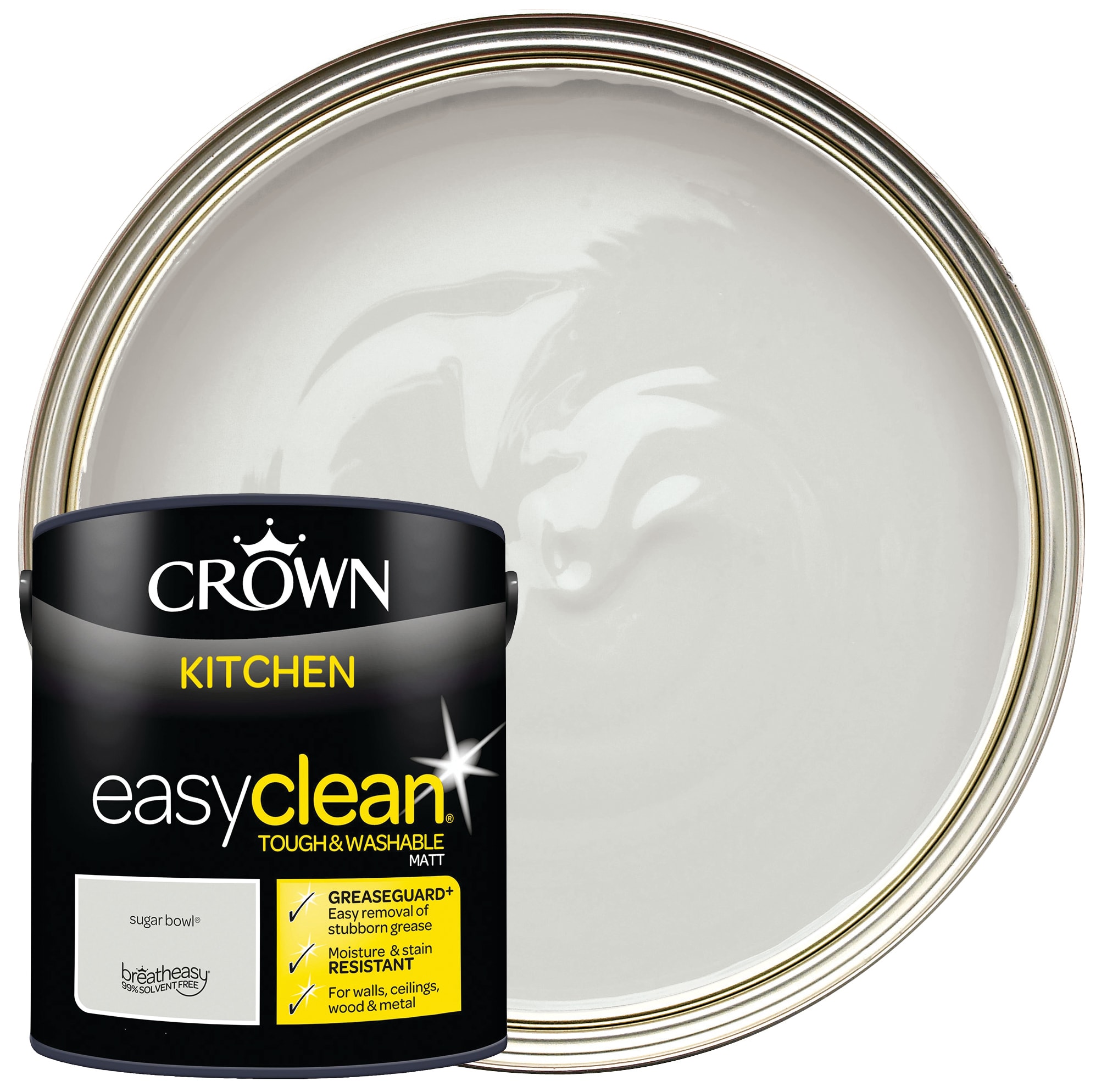 The Crown Easyclean® Kitchen has been specially developed to include our unique Greaseguard+ formulation to provide a cleaner kitchen environment. Our Easyclean® Kitchen range is designed to resist moisture and steam and allows everyday cooking stains to be wiped clean to keep rooms looking fresher for longer. Crown Easyclean® Kitchen Emulsion has been developed using our unique Breatheasy® 99% solvent free formulation and can be used on walls, ceilings, wood and metal.
