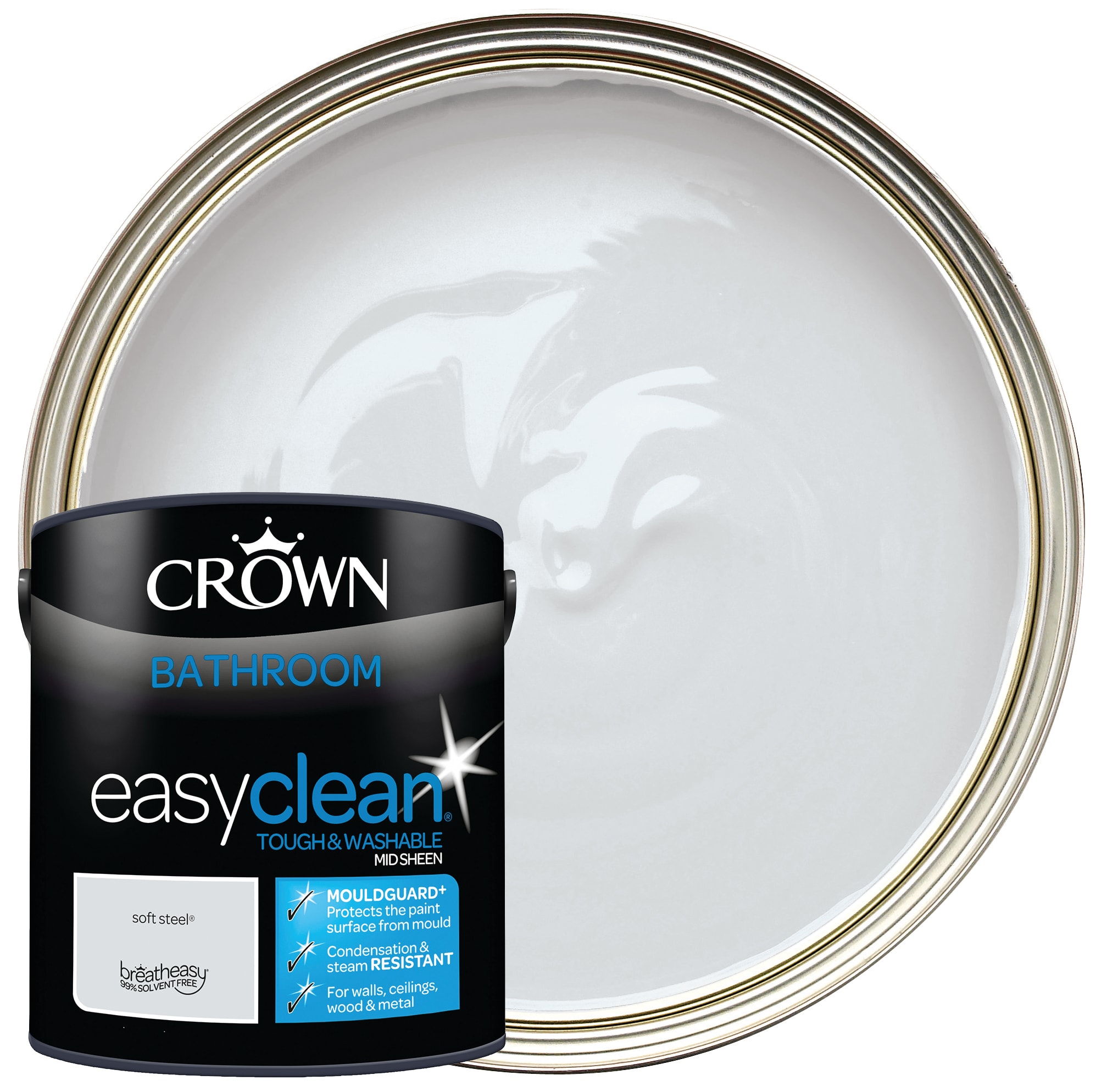 Crown Easyclean Mid Sheen Emulsion Bathroom Paint - Soft Steel - 2.5L