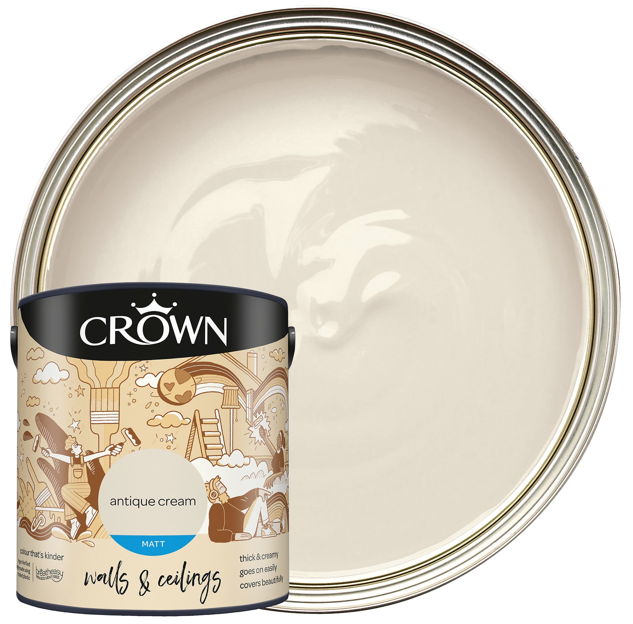 The Crown Matt Emulsion Paint gives your internal walls and ceilings a modern look with no surface shine. This rich and creamy formulation glides on effortlessly for a soft flawless finish. Breatheasy® formulation is 99% solvent free and reduces allergens. This excellent and full coverage paint will look perfect in any room within your home.