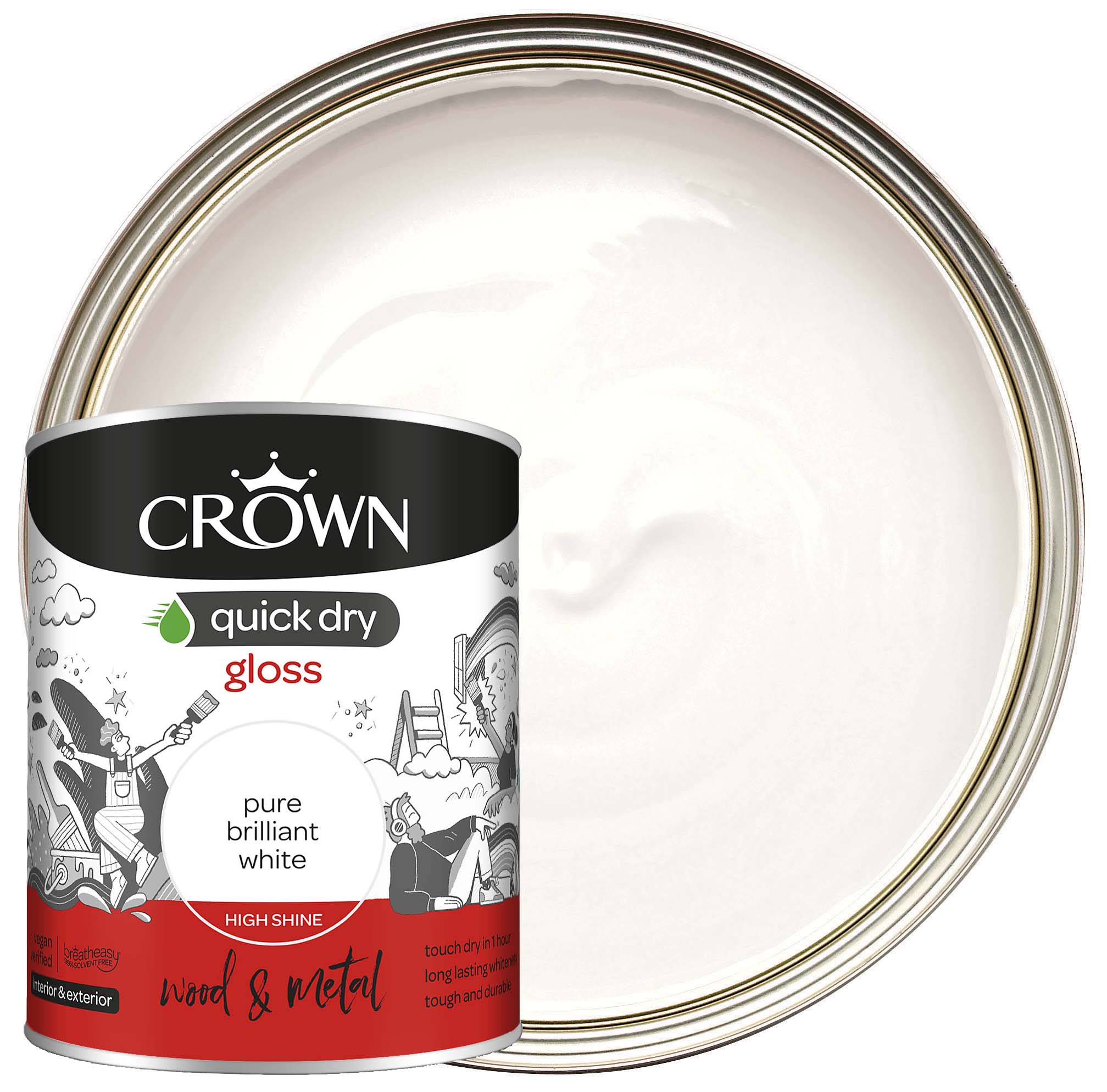 Crown Quick Dry Gloss Paint - Pure Brilliant White - 750ml