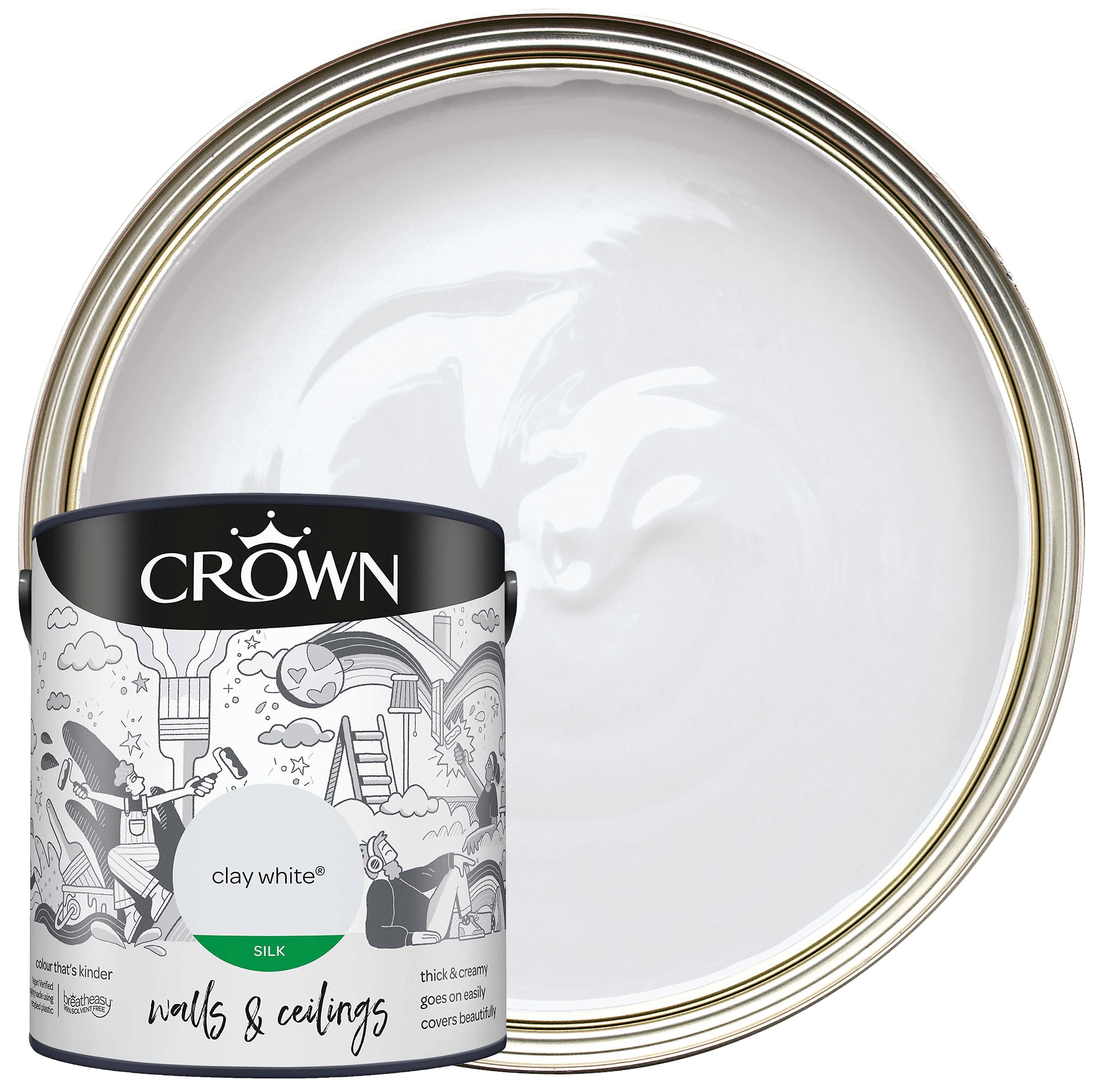The Crown Matt Emulsion Paint gives your internal walls and ceilings a modern look with no surface shine. This rich and creamy formulation glides on effortlessly for a soft flawless finish. Breatheasy® formulation is 99% solvent free and reduces allergens. This excellent and full coverage paint will look perfect in any room within your home.