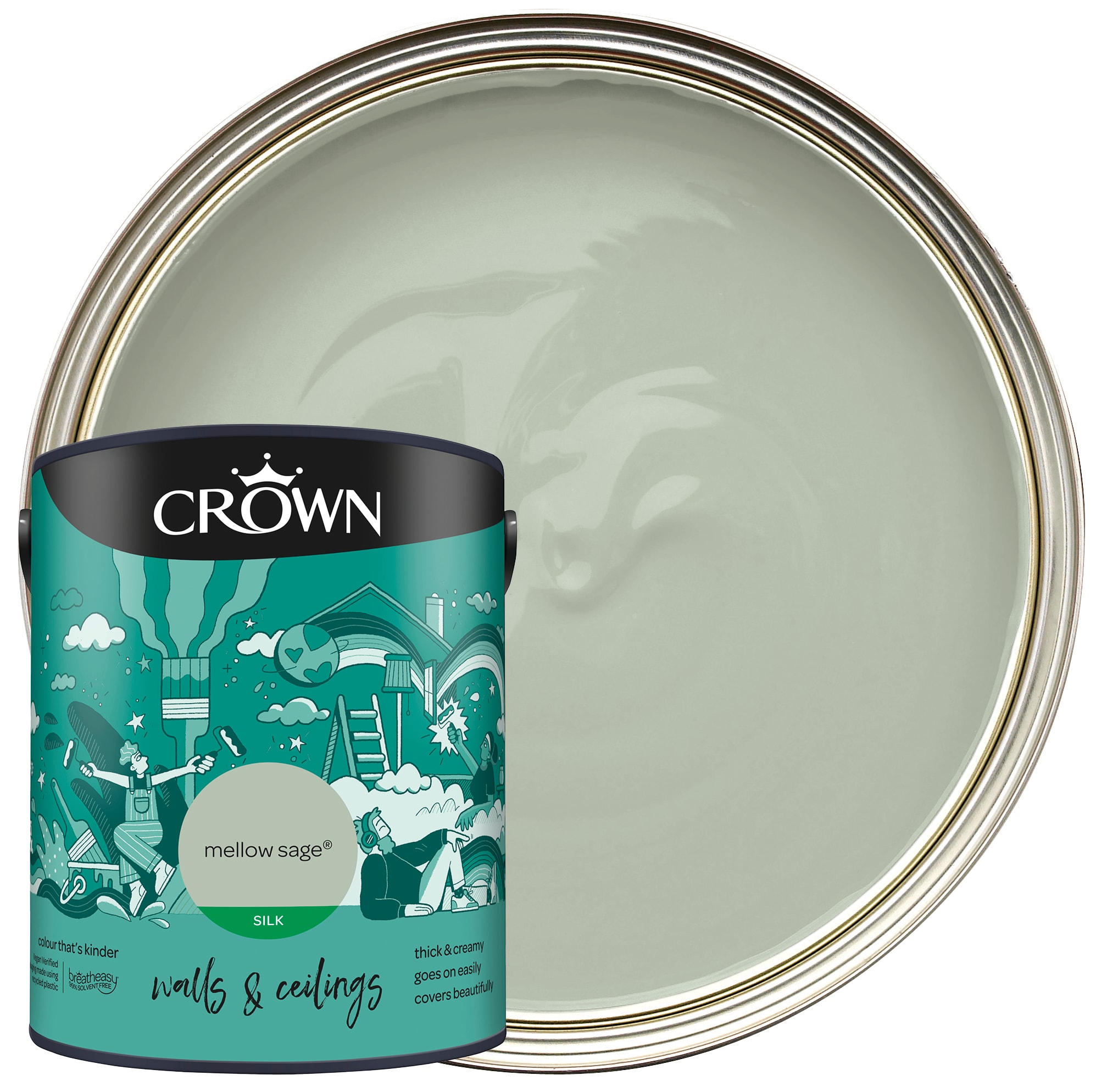 Walls and Ceilings Silk Emulsion provides a rich, reflective finish, for a subtle surface shine. Offering excellent versatility and complete coverage, this water-based paint can be applied throughout your entire home including living rooms, dining rooms, bedrooms and hallways. Introducing Crown breatheasy®, a 99% solvent free formulation offers you the confidence to decorate your home safely. Limiting exposure to airborne triggers of asthma and allergy, it helps create a healthier space for your whole family. Mellow Sage is a unique shade of pale sage green paint that provides a calming presence to any room setting.
