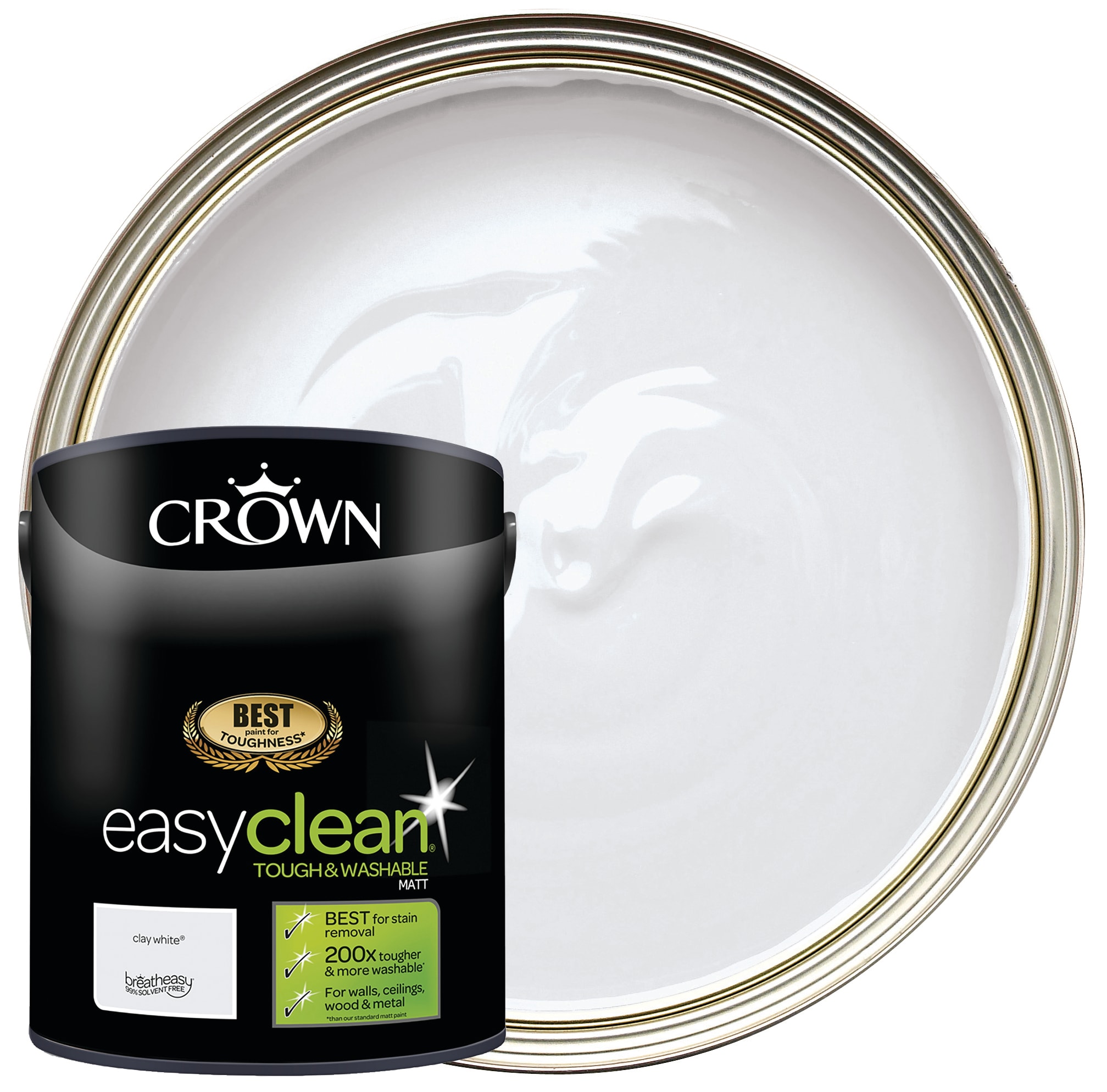 Crown Paints easyclean® Matt Emulsion in Clay White® is described by the Crown Colour Specialist as a cool white shade. A good staple colour that is especially great for creating a chiaroscuro effect on architectural details or wood panelling. As one of 33 colours in the easyclean® range, this advanced washable, wipeable, and multi-surface paint is perfect for busy family homes. Tried by 60 Mumsnet users, 98% would recommend it. Offering exceptional coverage, it’s ideal for walls, ceilings, wood, and metal, making it a great choice for living rooms, dining rooms, bedrooms and hallways.