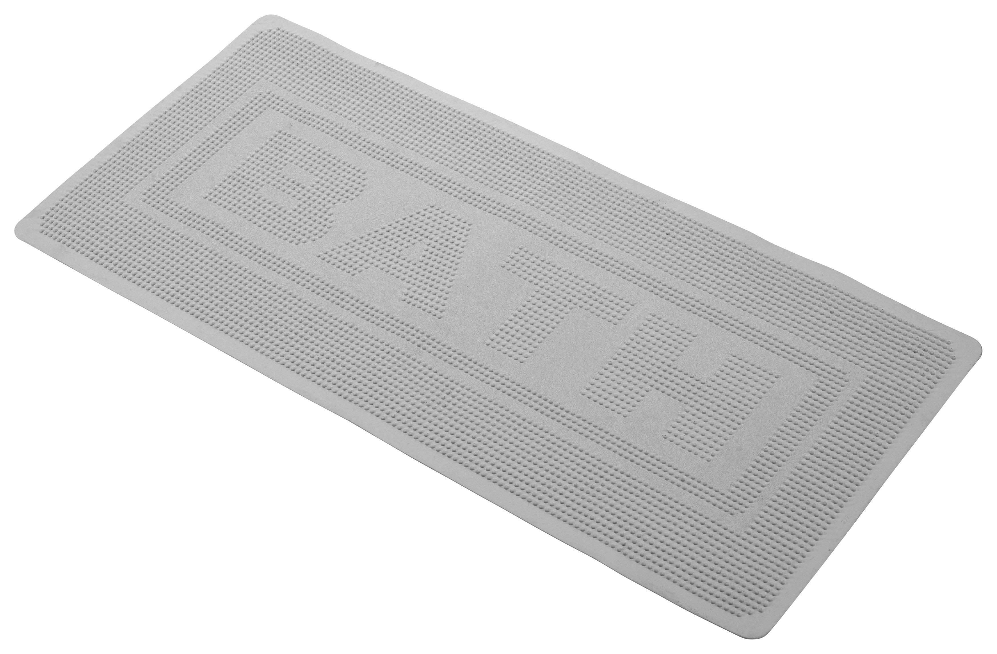 Croydex Grey Rubber Bath Mat can help reduce the risk of slips and falls in the bathroom. Finished with high strength suction cups, this simple 'Bath' mat design easily push-fits into the bottom of any bathtub for a secure fit. Featuring an anti microbial treatment, this mat is also machine washable.