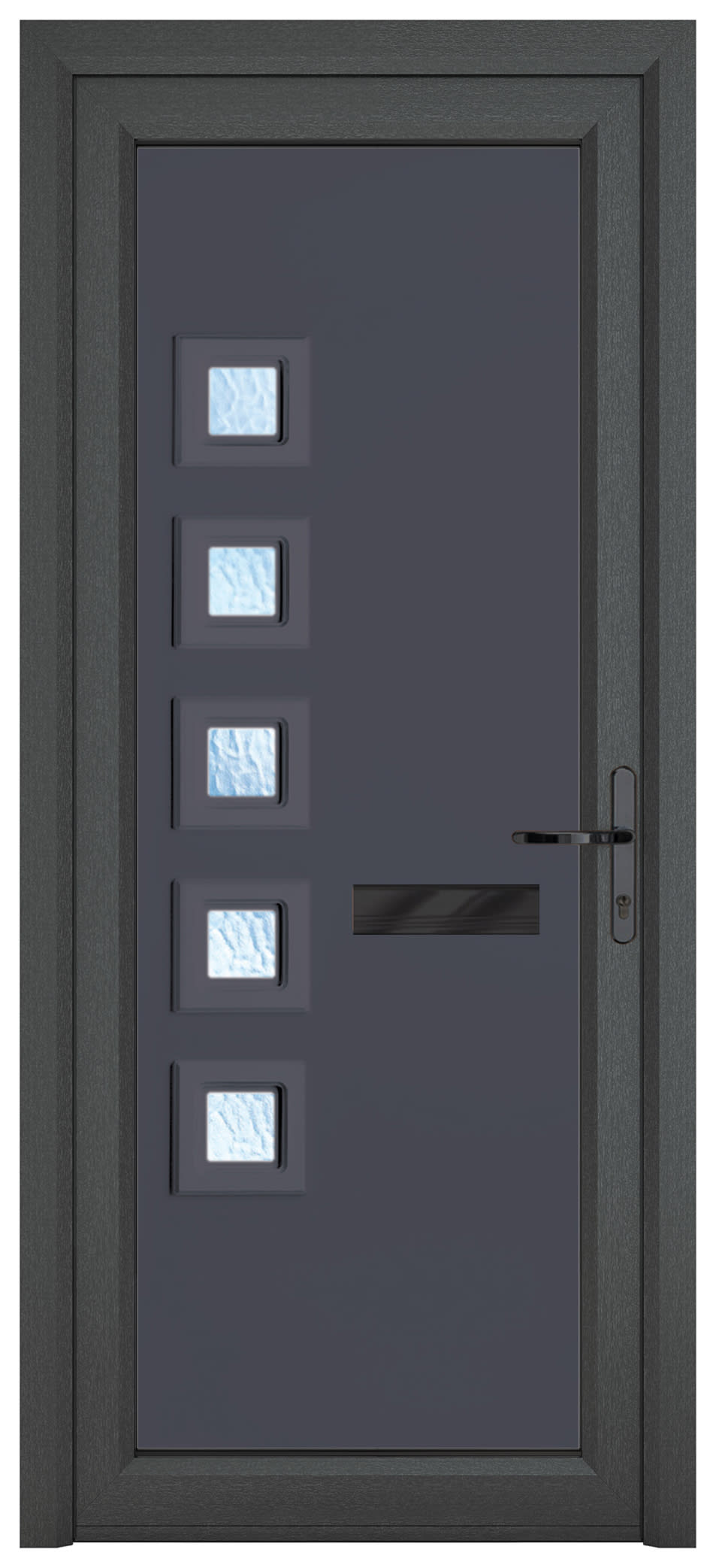 Crystal Malaga Left Hand Pre-hung Grey uPVC Front Door with 5 Square Obscure Glazing - 920 x 2090mm