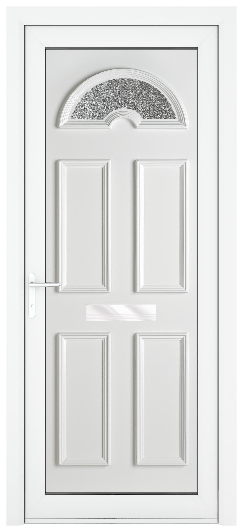 Crystal Sandringham Right Hand Pre-hung White uPVC Front Door with Obscure Sunburst Glazing - 920 x 2090mm
