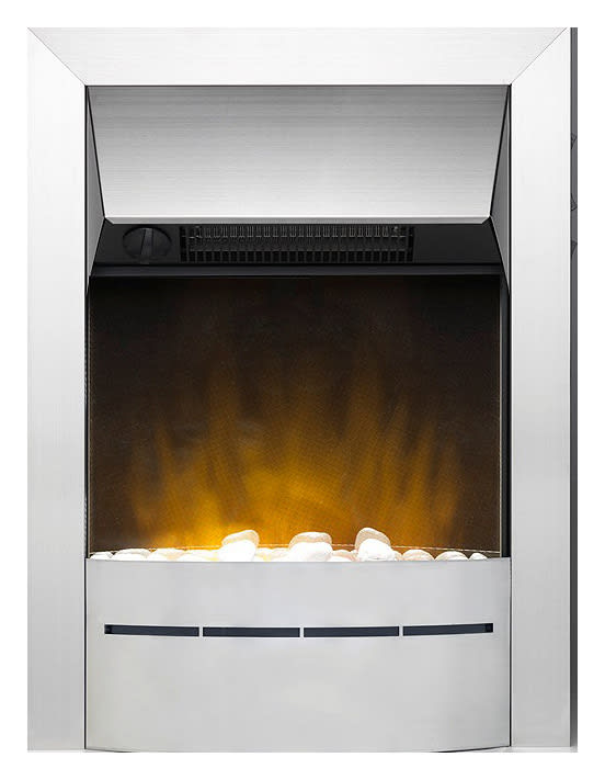 The Dimplex Savena Brushed Chrome Optiflame Electric Inset Fire forms part of the Ecolite range of electric inset fires that is designed to offer the ultimate in electric heating. Complete with a top side switch control, the fire is easy to operate, and a one piece molded coal bed with kettle connection makes for easy installation. For the ultimate in heat and comfort, a concealed 2.0kW fan heater provides a choice of two heat settings and for full visual effect, the flame can be enjoyed independently of the heat. Whilst boasting 100% efficiency, running costs are minimised courtesy of integral ‘ecolite’ energy efficieny LED lights.