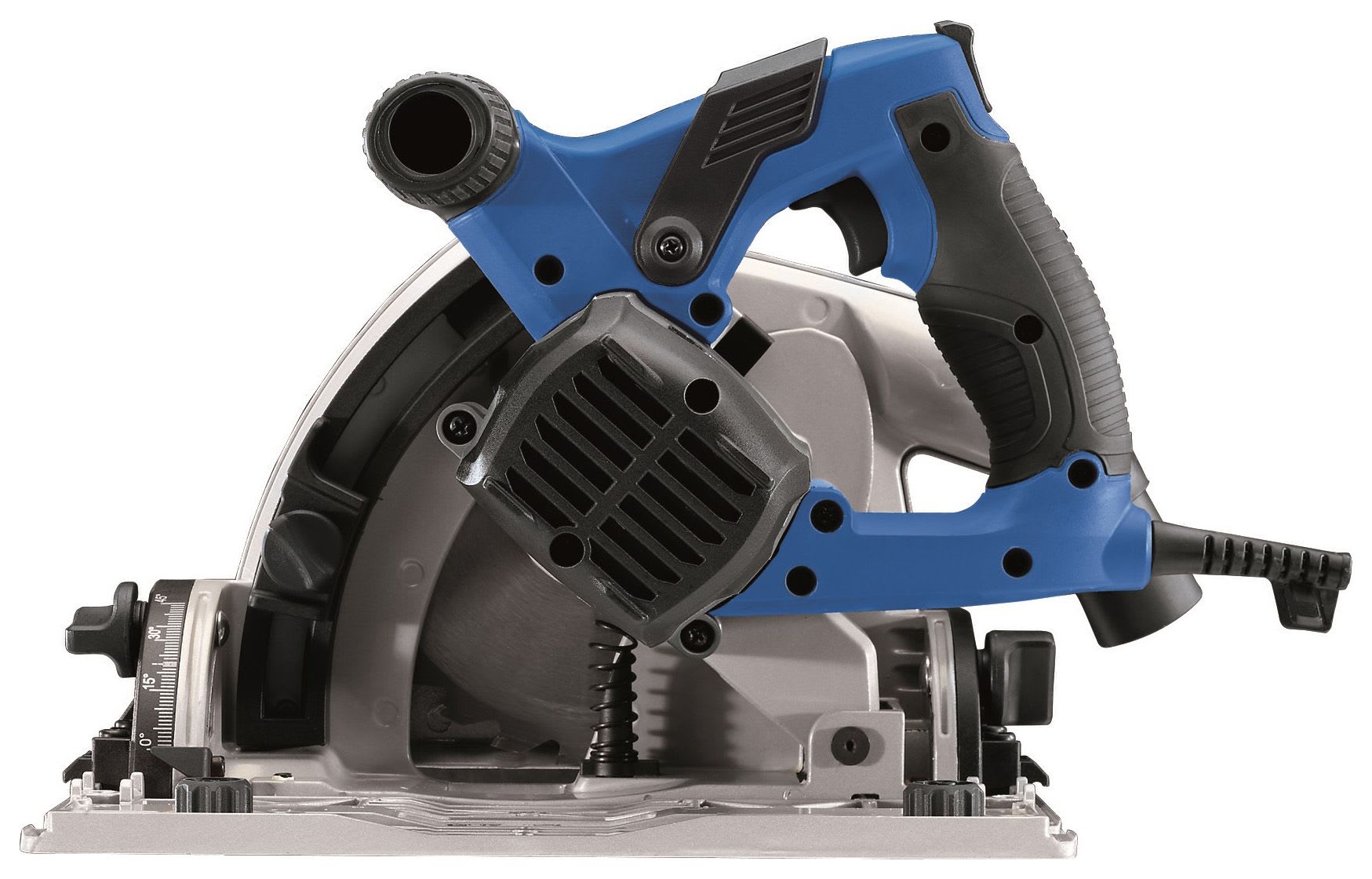 The Draper plunge saw provides the user with a maximum cutting depth of 55mm at 90° and 42mm when at 45°, offering versatility in the types of wood you can cut. It comes with an electronic brake and a spindle lock also makes it easier for you to change the blade, once again limiting the risk of injury. This product includes 2 x 0.7m guide rails with anti-slip grips.