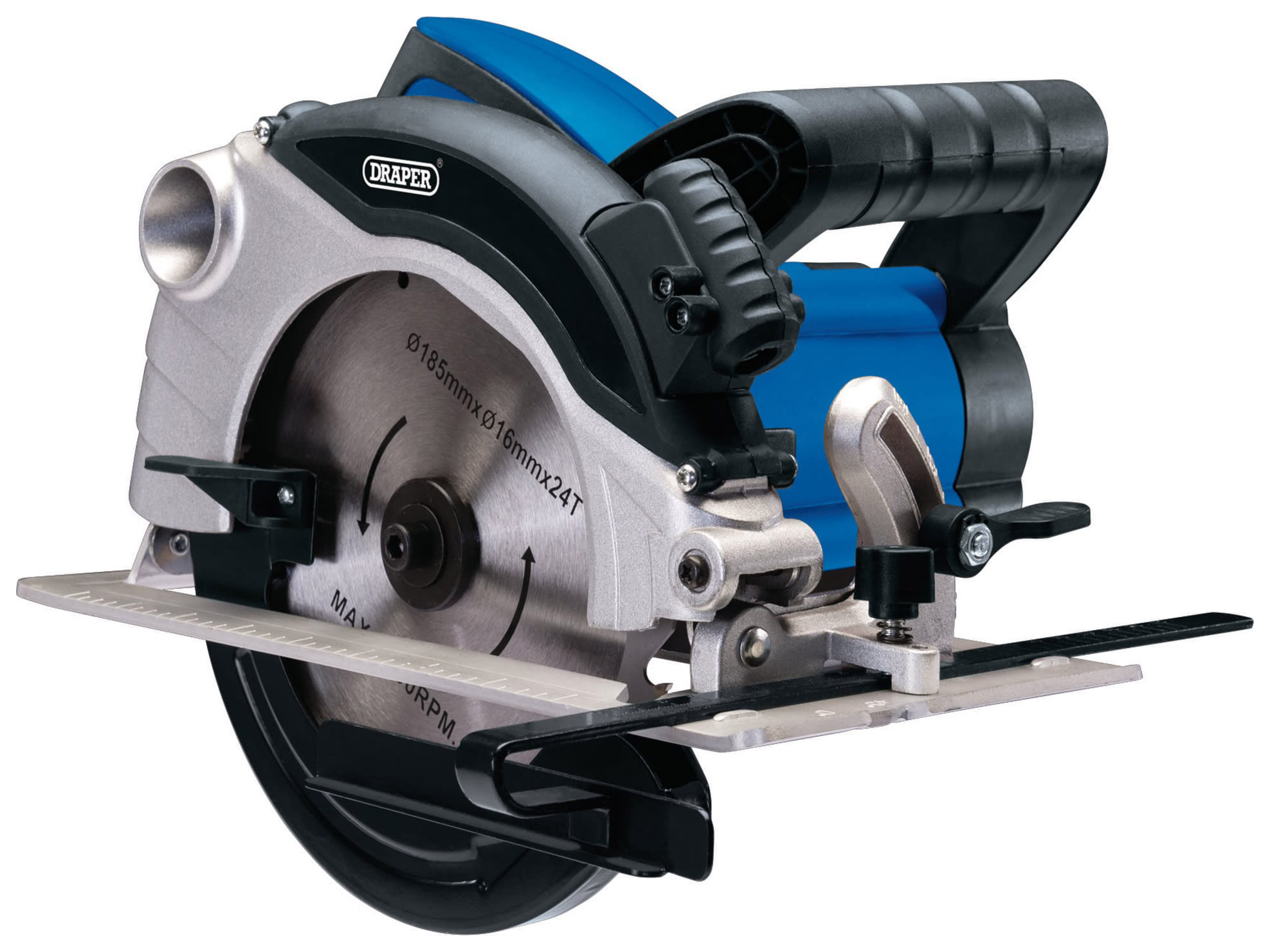The Draper CS1300D185 185mm Corded Circular Saw has an adjustable angle with max cutting depth 63mm at 90° and 42mm at 45°. Featuring a aluminium base, class II laser cutting guide and spindle lock. Supplied with 24T blade, guide ruler, parallel fence guide and 2m cable with BS plug.