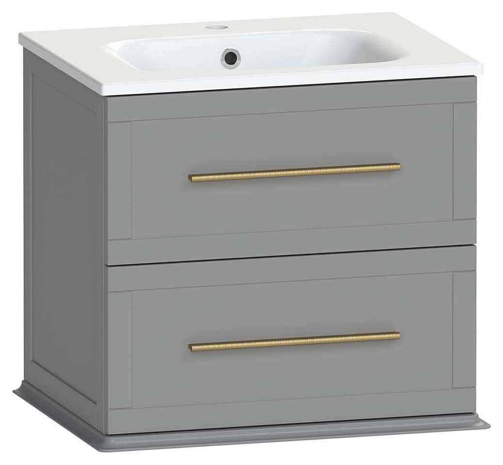 Duarti by Calypso Kentchurch Strata Grey Wall Hung Vanity with Farley Recessed Basin & Brass Handles - 600mm
