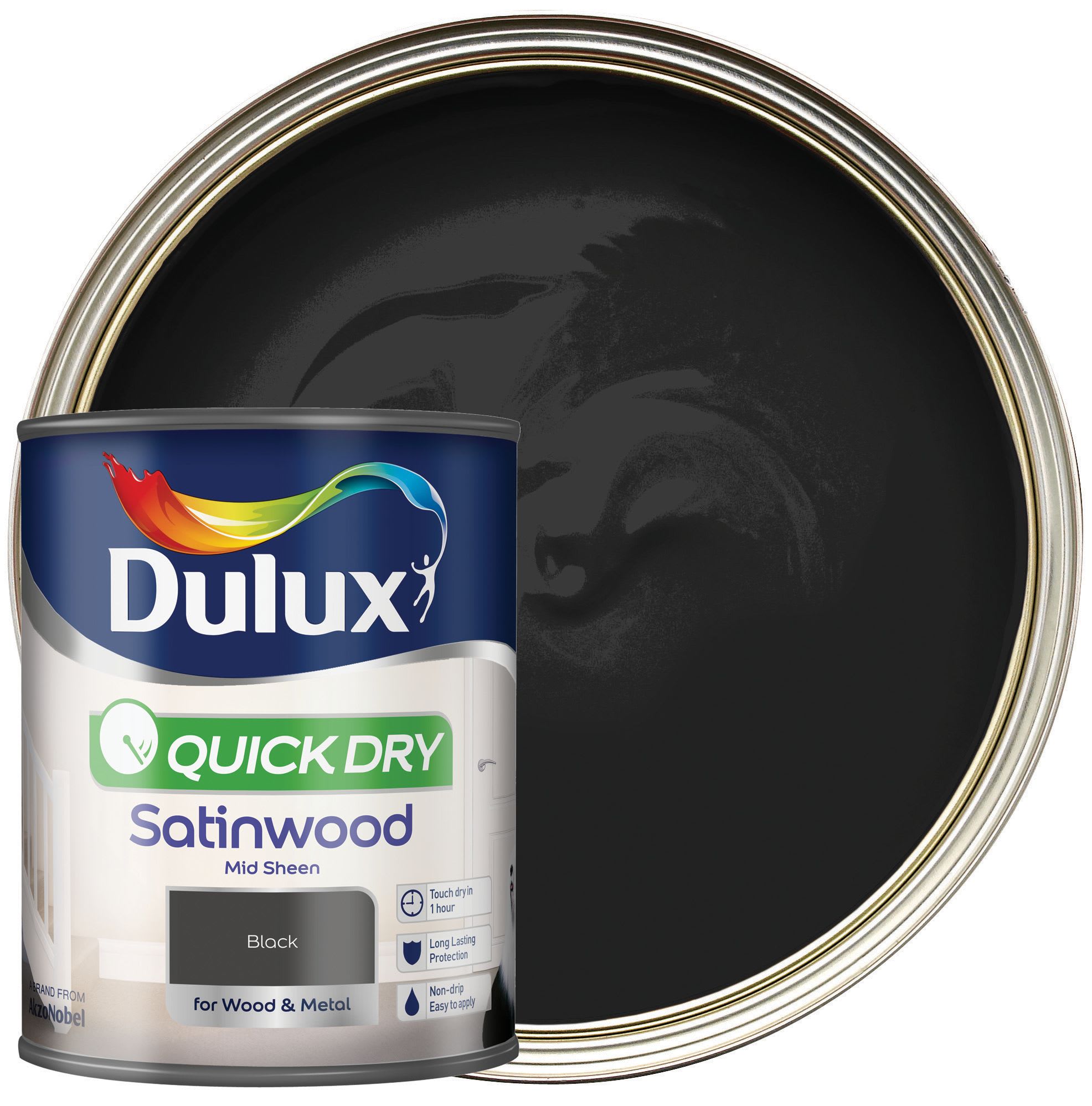 Dulux Quick Dry Satinwood Paint - Black - 750ml
